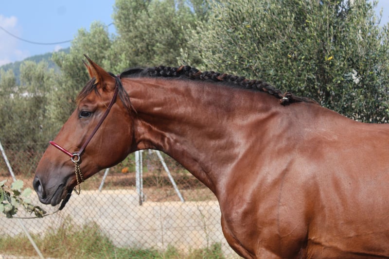Gelegenheit, einen hervorragenden Hengst zu erwerben! Zum Verkauf steht ein beeindruckender PRE-Hengst, geboren im Jahr 2021. Dieser kastanienfarbene Vertreter besticht durch seine imposante Erscheinung und natürliche Eleganz. Spezialisiert auf Dressur, ist er ideal für Reiter, die ein Pferd mit gutem Charakter suchen. Preis auf Anfrage! Verpassen Sie nicht die Chance, einen Hengst von außergewöhnlicher Qualität zu besitzen. Für weitere Informationen stehen wir Ihnen gerne zur Verfügung.