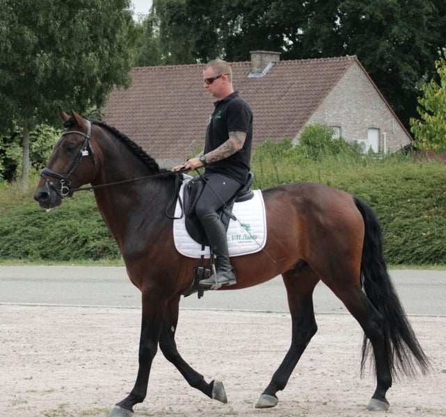 Brave, leergierige 4-jarige hengst met sociaal karakter. Groot robuust en sterk gebouwd. Zadelmak en dressuur opgeleid en getraind met veel potentieel naar de toekomst Zowel moeder als vader presteren MCI op Europees Niveau.