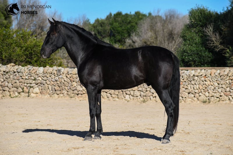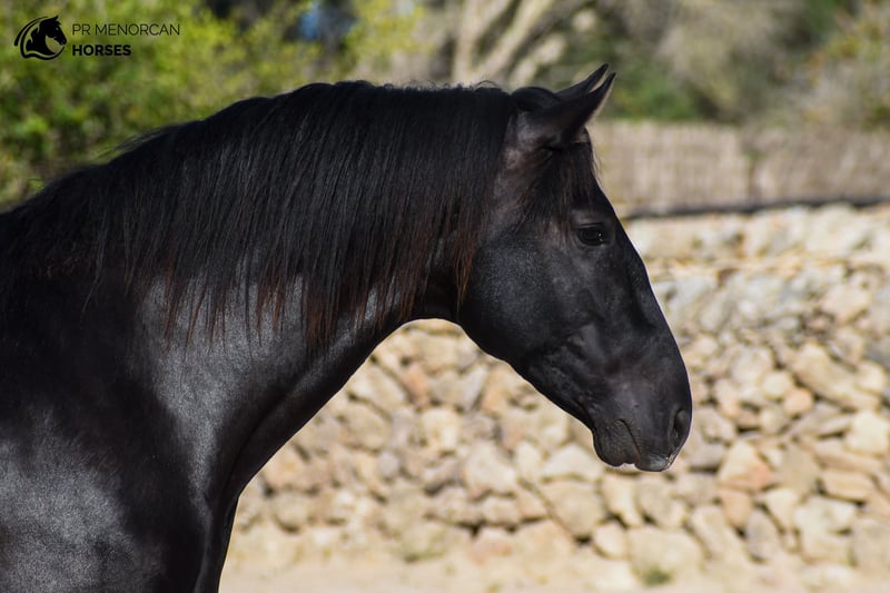 Unique opportunity! Stunning Andalusian stallion for sale, born in 2021. While he doesn't have a PRE passport (his mother didn't have one), he is the son of a majestic PRE stallion from the renowned Military Stud. With his sleek black coat and current height of 152 cm (he’ll continue growing until 6 years old), this horse is the perfect combination of beauty and potential. With the ideal balance of energy for work and a gentle, affectionate nature, he is perfect for those seeking a noble and close companion. He is calm under pressure and remarkably agile, making him the perfect partner for dressage, eventing, or working equitation. His calm demeanor also makes him ideal for relaxing trail rides. This remarkable horse is already familiar with basic handling: he picks up his feet easily, works beautifully on the lunge line, is accustomed to a bit and surcingle, and travels stress-free in a trailer. He behaves perfectly with the farrier and can live comfortably in both freedom or stabled environments. He is regularly dewormed and in excellent health. Location: Menorca You can visit him in person, or we can manage the entire purchase process online. We take care of the veterinary exam, paperwork, and transport – no matter where you are in the world! We can also help you organize castration before transport or training livery in Menorca. We’d love to help you find the horse of your dreams, and this may be the perfect partner you’ve been searching for!