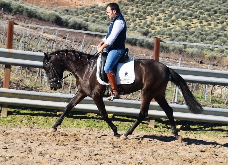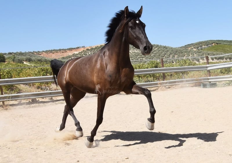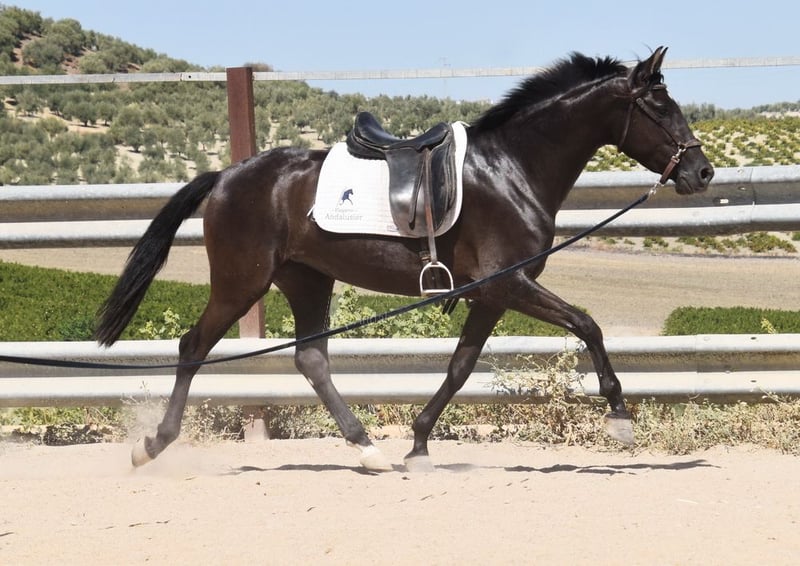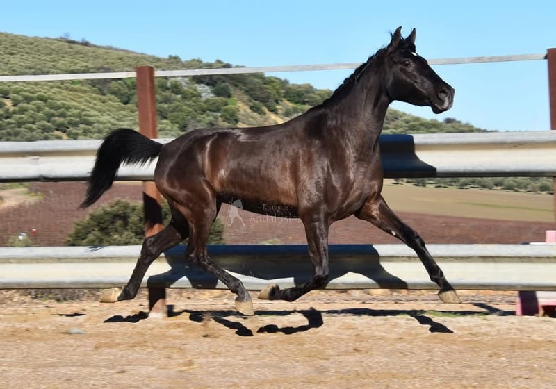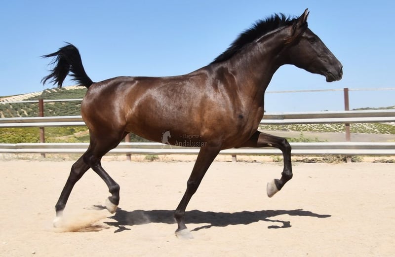 carácter amable, curioso, sociable, lungido, está siendo montado, buenos movimientos, color especial, preñada del semental PRE Bayo Perla Hidalgo de Fuerza, se espera la cría para agosto de 2026, ascendencia: Hnos Gonzalez Gallego, Francisco Diaz Gonzalez, Yeguada Militar, Yeguada el Bayo www.elegante-andalusier.com