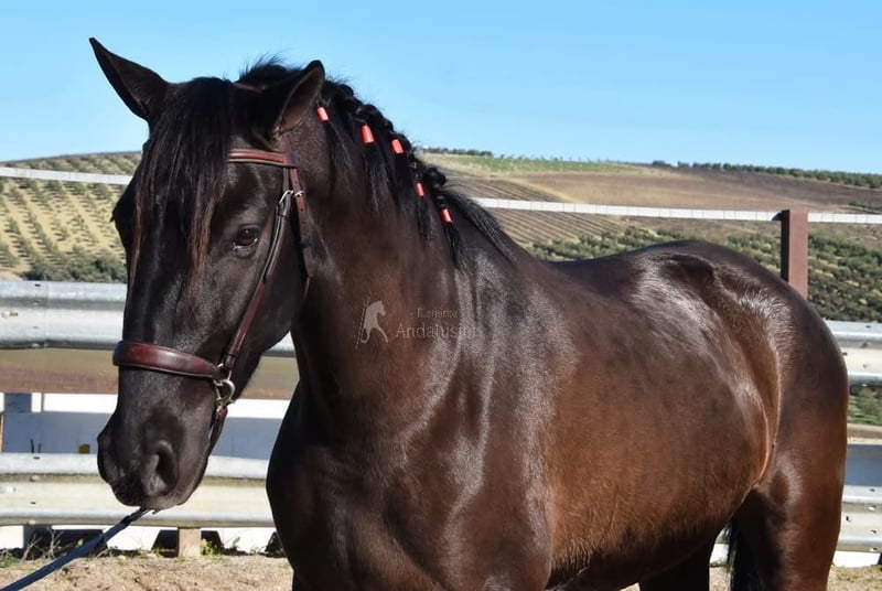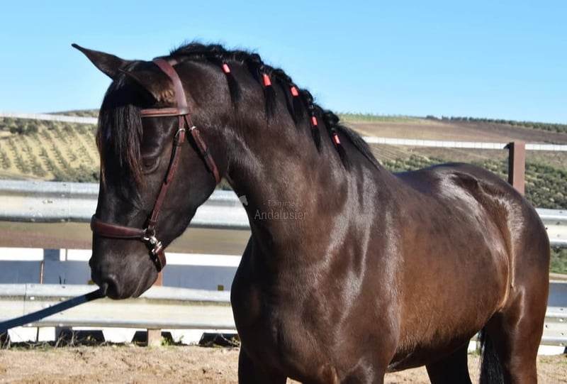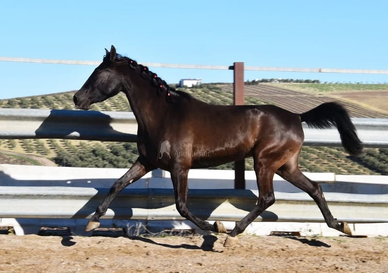 Lief karakter, nieuwsgierig, mensgericht, longeerbaar, wordt aangezad, goede bewegingen, bijzondere kleur, drachtig van de PRE hengst Bayo Perla Hidalgo de Fuerza. De veulens worden verwacht in augustus 2026. Afstamming: Hnos Gonzalez Gallego, Francisco Diaz Gonzalez, Yeguada Militar, Yeguada el Bayo. www.elegante-andalusier.com