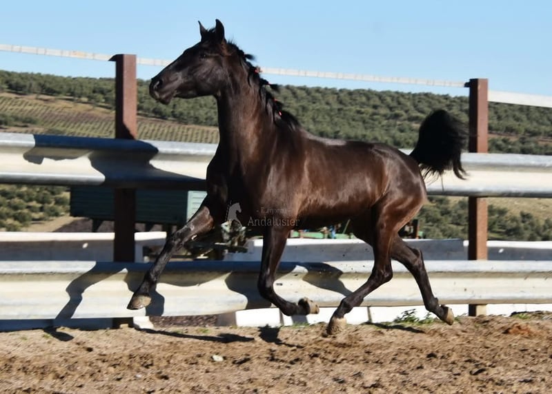 caractère doux, curieux, attaché aux humains, longé, commence à être monté, bonnes allures, couleur spéciale, pleine du étalon PRE Bayo Perla Hidalgo de Fuerza, le poulain est attendu pour août 2026, pedigree : Hnos Gonzalez Gallego, Francisco Diaz Gonzalez, Yeguada Militar, Yeguada el Bayo www.elegante-andalusier.com