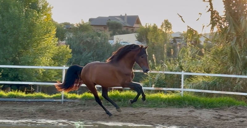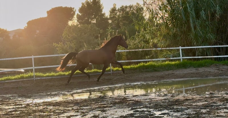 Chance auf den Erwerb eines großartigen Pferdes! Zum Verkauf steht ein wunderschöner PRE-Hengst, geboren im Jahr 2021. Mit einer Stockmaß von 1,59 m, in einer kastanienroten Farbe, ideal für alle, die ein Pferd mit beeindruckendem Erscheinungsbild und Eleganz suchen. Spezialisiert auf Dressur, zeichnet sich dieses Pferd durch sein edles Wesen und seine hervorragende Bereitschaft für Training und Turnierreiten aus. Nutzen Sie diese Gelegenheit, um ein Pferd von außergewöhnlicher Qualität zu erwerben. Für weitere Informationen stehen wir Ihnen gerne zur Verfügung.
