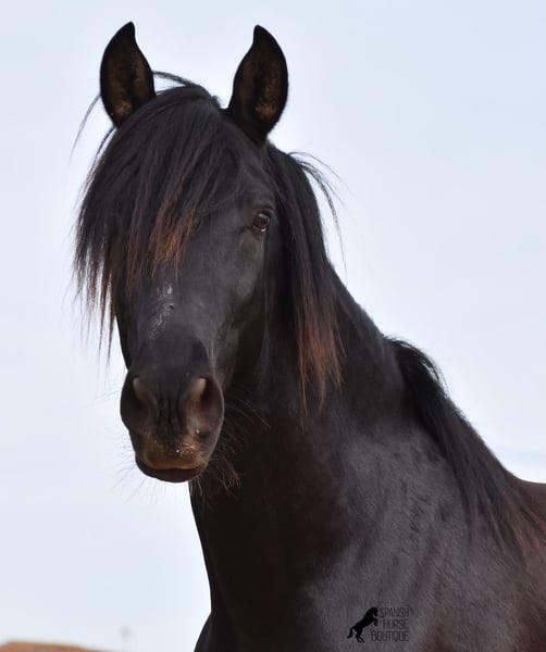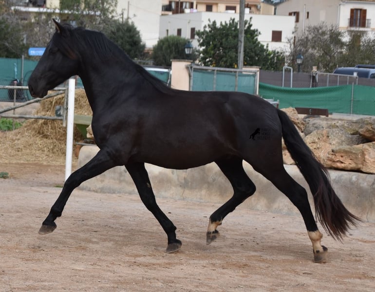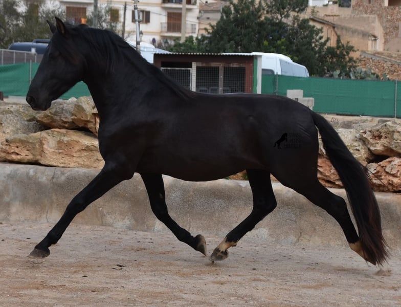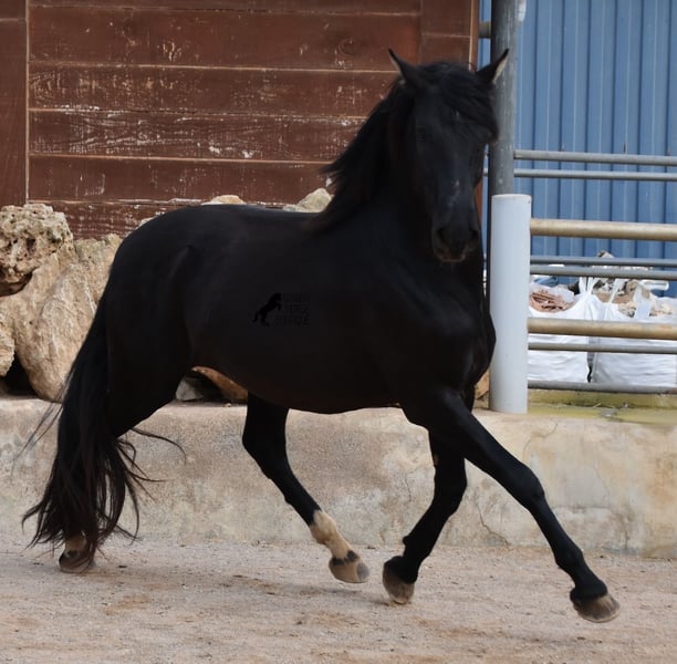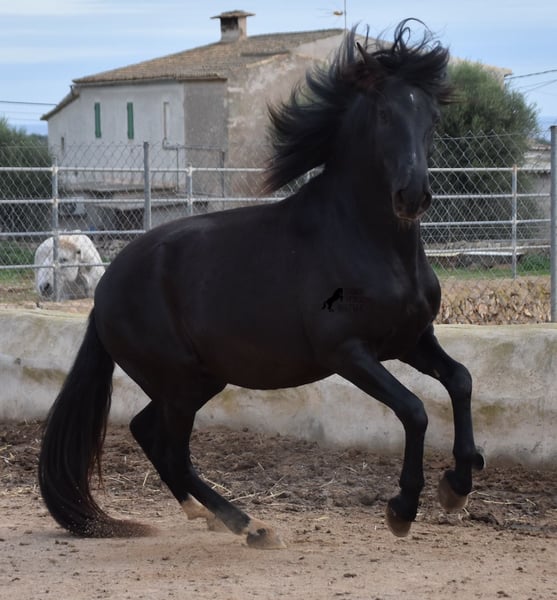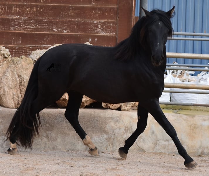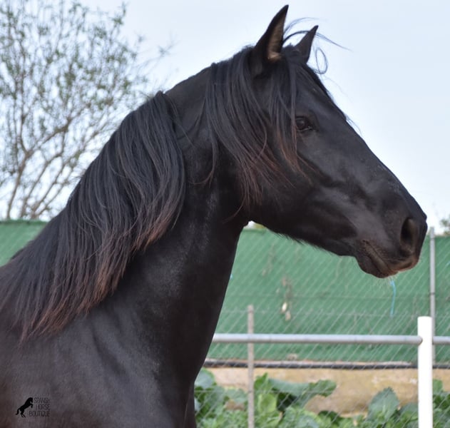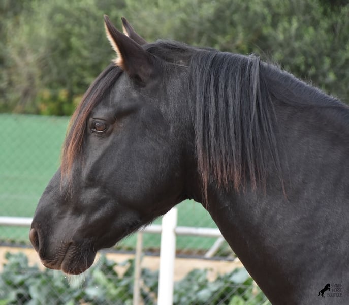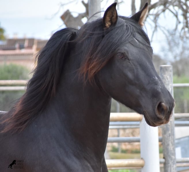 Hardly any other stallion has had as much success and is as famous as a Spanish dressage horse as POETA DE SUSAETA! And that is the sire of this baroque beauty, who has clearly also inherited good movement. This purebred Pura Raza Española stallion (Andalusian with ANCCE breed certificate), born in summer 2021, also has an excellent pedigree on his dam's side. There we find the Mejorante stallion NERO II and the ELITE stallion Inedito, both of whom are also great horses in the dressage world of the Spanish horse. And although the pedigree is very sporty, this youngster is beautifully compact and baroque, which makes him even more special. Plus the beautiful black coat and the lovely eyes - what more could you wish for? He has not yet been broken in, as it is important to the breeder that his horses have time to grow and are not overtaxed. This pays off, because the stallion is absolutely people-friendly, deeply relaxed, cuddly and a great guy all round. He lives next to mares, which doesn't interest him at all ;) He currently measures 159 cm and will grow a little more. He is barehoofed, lives in a stable and there is the possibility that he will be gelded and/or ridden on site. He is currently on Mallorca! Videos and pedigree available on request. A top horse at a very fair price. I would be happy to organize an AKU, riding, transport or even your trip if you come to see him in person. Details can be found on my website or in conversation. Saludos from Spain