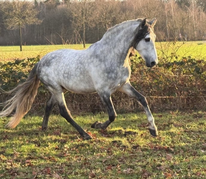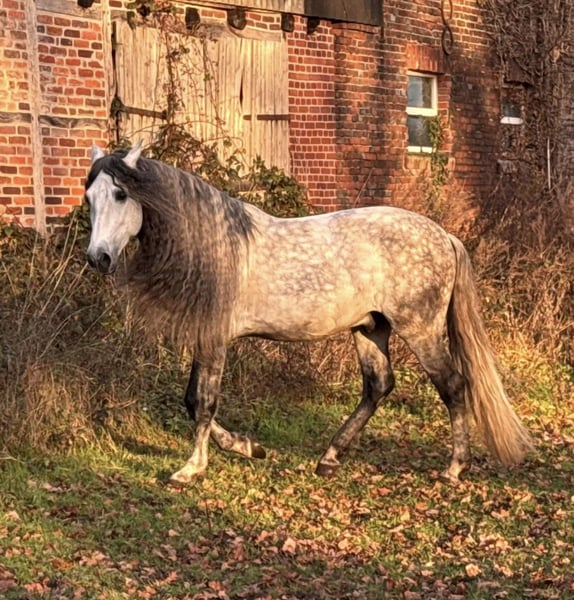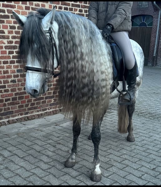 Traumhaft schöner 5 jähriger PRE Hengst (161 zur Zeit) aus allerbesten Blutlinien ... Opa mütterlicherseits ist der Vater des Champions Romero de Trujillo (letzte 2 Fotos, aktueller Sieger der S Dressur Kür Sicab 2025) Väterlicherseits geht er auf Remache zurück Seine Optik ist kaum zu beschreiben so schön ist er, er hat die Augen der alten Cartujano Linien, riesengroß und ehrlich... jeder der ihn sieht sagt ohhh ist der aber schön.. Er ist sehr gelehrig und schmusig aber aufgrund seiner Jugend kein Anföngerpferd. Er macht gern Bodenarbeit und ist altersgerecht in den Grundgangarten angeritten auch im Gelände. Wir wünschen uns nette ernstgemeinte Anfragen und er geht nur wenn es von allen Seiten passt. Der Preis steigt mit seiner weiteren Ausbildung Anbieter