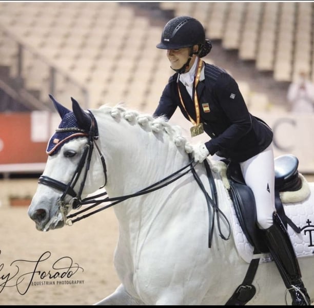 Dreamily beautiful 5-year-old PRE stallion (currently 16.1 hh) from excellent bloodlines... On his maternal side, his grandsire is the father of the champion Romero de Trujillo (last two photos, current winner of the S Dressage Kür Sicab 2025). On his paternal side, he descends from Remache. His appearance is almost indescribable – he is stunning, with the eyes typical of the old Cartujano lines: large, honest, and expressive... Everyone who sees him exclaims, "Oh, he's so beautiful." He is very trainable and affectionate, but due to his youth, he is not suitable as a beginner's horse. He enjoys groundwork and is appropriately ridden in basic gaits for his age, also suitable for trail riding. We are looking for serious and genuine inquiries, and he will only be sold if everything fits well from all sides. His price will increase with further training. Seller