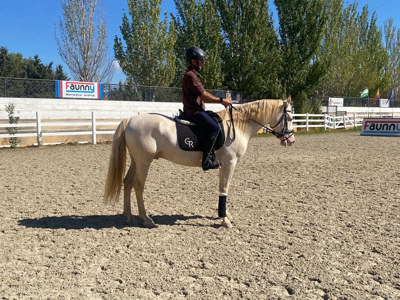 **Zu verkaufen: Wunderschöner Perlino PRE Hengst** Wir präsentieren Ihnen eine bemerkenswerte Gelegenheit, einen auffälligen Perlino PRE Hengst zu besitzen, geboren im Jahr 2020. Mit einer beeindruckenden Größe von 161 cm ist dieser gutaussehende junge Hengst nicht nur ein visueller Genuss, sondern verfügt auch über ein wunderbares Temperament, das die Arbeit mit ihm zu einem Vergnügen macht. Er ist auf Western Pleasure spezialisiert und zeigt geschmeidige Gänge sowie ein ruhiges Wesen, was ihn zu einem hervorragenden Kandidaten für sowohl Wettkämpfe als auch entspannte Ausritte macht. Seine einzigartige Farbe und elegante Präsenz werden sicherlich überall, wo Sie hingehen, Blicke auf sich ziehen. Dieser Hengst wurde gut behandelt und ist bereit, mit einem engagierten Besitzer neue Abenteuer zu erleben. Egal, ob Sie an Wettkämpfen teilnehmen oder einfach nur das Vergnügen des Reitens genießen möchten, er wird Ihre Erwartungen sicherlich übertreffen. Verpassen Sie nicht die Chance, dieses außergewöhnliche Pferd in Ihren Stall aufzunehmen. Kontaktieren Sie uns für weitere Informationen und um einen Besuch zu vereinbaren!