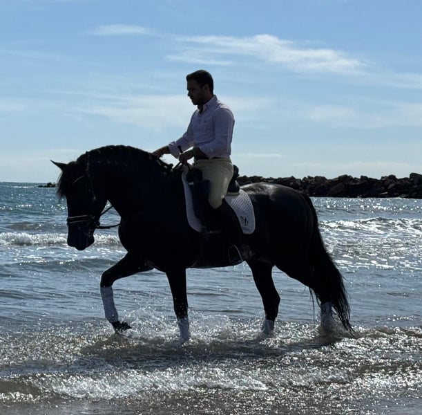 **Sales Advertisement: PRE Stallion** For sale is an impressive PRE stallion, born in 2020. With a height of 162 cm and his noble black coat, he attracts all attention. The stallion is well-mannered, has a friendly disposition, and is manageable both in the stable and during training. He is an excellent choice for ambitious riders who enjoy dressage work and are looking for a reliable partner. If you are interested or require further information, please feel free to contact me. Viewings are possible by appointment. Don't miss this opportunity to meet an extraordinary stallion! Location: Spain