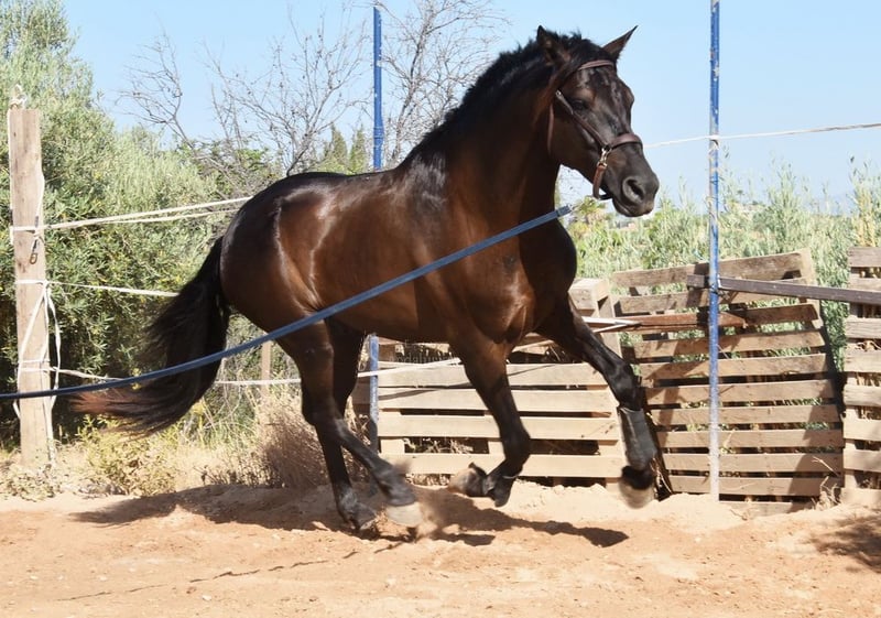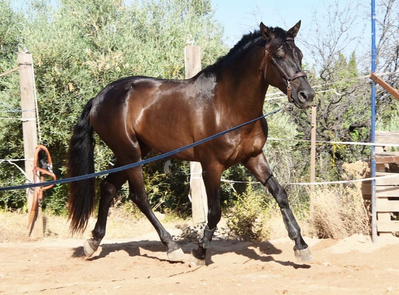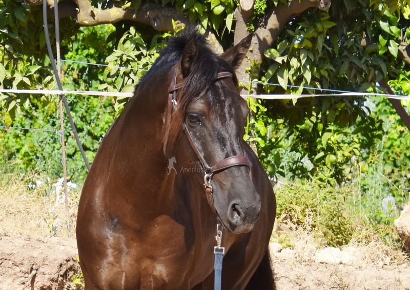 carattere gentile e tranquillo, curioso, affettuoso, montato nelle andature di base e nel terreno, buone movenze, baio con gene PRL, discendenza: Yeguada las Espadas, Yeguada los Valcanos, Ururopa Laborioso III è qualificato www.elegante-andalusier.com