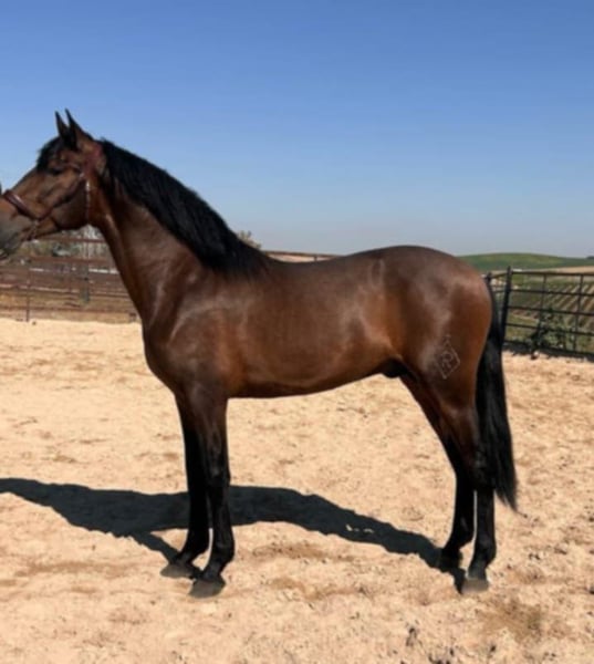 He is a (soon-to-be) 5-year-old bay PRE stallion with classic type and an expressive presence. He stands out for his harmonious conformation, good proportions, and the typical nobility of the Pura Raza Española. The stallion is backed and under saddle, showing himself to be calm, cooperative, and people-oriented. He works willingly, is pleasant to handle, and has a well-balanced temperament. In daily handling, he is uncomplicated and friendly. He is ideally suited for riders looking for an honest, quiet PRE — whether for further dressage training or for leisure riding. A charming young stallion, who impresses both with his character and his appearance. Directly from his breeder. Mother can be visited as well and half brother is located in Switzerland. 📍 Location: Spain 📞 Further information gladly upon personal inquiry (English, German or Spanish).