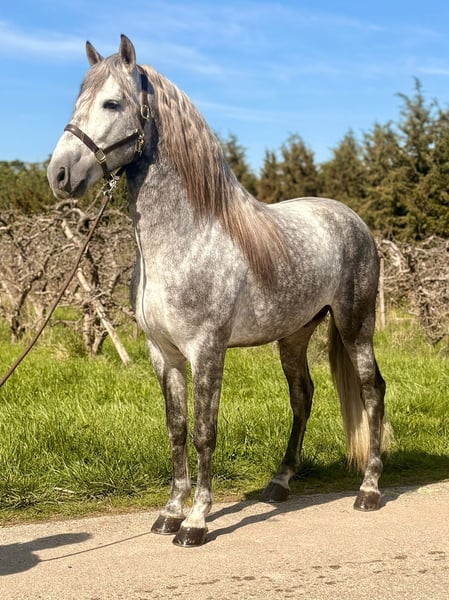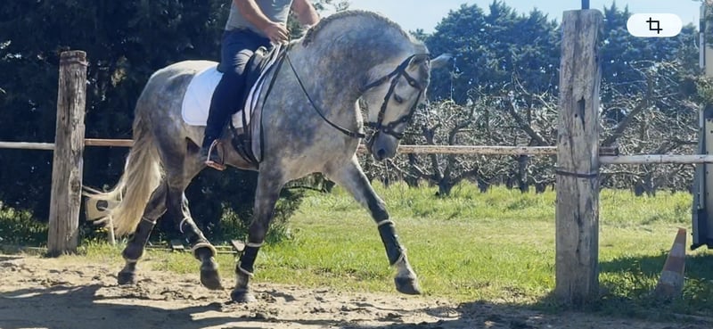 Habanero HB II – Hengst – 5 Jahre alt – 1,64 m groß Habanero HB II ist ein wunderschöner fünfjähriger Hengst mit einer Schulterhöhe von 1,64 m, der durch seine beeindruckende Erscheinung und sein ausgezeichnetes Wesen besticht. Er ist ein äußerst freundliches Pferd, im Alltag leicht zu handhaben, angenehm im Umgang und sehr menschenbezogen. Sein harmonisches Exterieur, seine gute Bewegungsqualität und sein ausgeglichener Charakter machen ihn zu einem idealen Partner für ein entwicklungsfähiges Projekt. ✔ 5 Jahre alt ✔ Hengst ✔ 1,64 m groß ✔ Sehr gutes Wesen ✔ Leicht zu manipulieren ✔ Engagierter und williger Charakter Geeignet für Dressur, Reitkunst, Zucht oder hochwertige Freizeitnutzung. Ein zuverlässiges Pferd mit großem Potenzial für Reiter, die einen eleganten und verlässlichen Partner suchen. Auf Anfrage vorführbar. Fotos und Videos sind privat verfügbar.