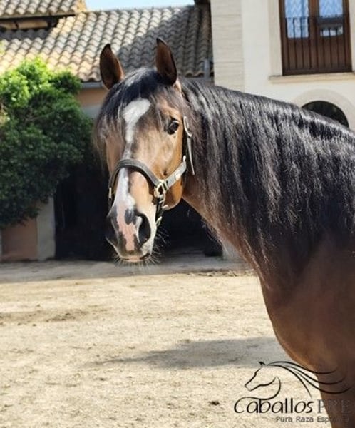 Sexo: Semental Nacido: 2020 Raza: P.R.E Color: Castaño Tamaño: aprox. 1.65 m Padre: Juglar XXVI Madre: a consultar Nivel de entrenamiento: actualmente en proceso de montura Precio: 15.000 € Ubicación: España, Mallorca Zafiro es un semental P.R.E. super elegante con un carácter claro y mucho encanto. Nació en la criadora y creció en manada. Ha tenido mucho tiempo para su desarrollo y actualmente está siendo montado por primera vez. Si se desea, por supuesto, se le puede castrar, pero durante nuestro encuentro no mostró ningún comportamiento de semental. Ahora, al ser montado, es muy fácil de manejar y se comporta muy bien. Zafiro tiene una excelente ascendencia a través de Juglar XXVI y unos movimientos muy buenos. En cuanto a su carácter, no deja nada que desear, es muy sociable y disfruta de cada momento de cariño.