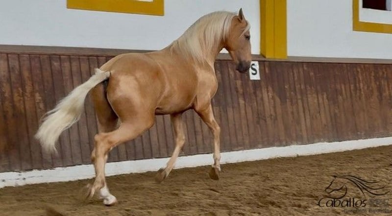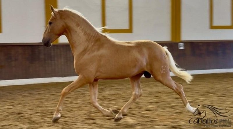 Geschlecht: Hengst Geboren: 09/2021 Rasse: P.R.E Farbe: Palomino Größe: ca. 1.66 m zur Zeit Vater: auf Anfrage Mutter: auf Anfrage Ausbildungsstand: longiert Preisklasse: 20.000.- - 25.000 Standort: Spanien, Merida Außergewöhnlicher Palomino Hengst - perfekt in Exterieur mit ausgezeichneten Bewegungen und toller Größe. Er kennt es leger longiert zu werden, wurde bisher noch nicht angeritten. Abstammung: Marti Verdia - Yeguada El Bayo. Er hat bereits Röntgenbilder ohne Befund. Sehr interessanter Junghengst, der für die Zucht gleichermassen interessant ist wie für die Klassische Dressur. Toller Charakter, cool und unerschrocken, immer aufmerksam und ehrlich.