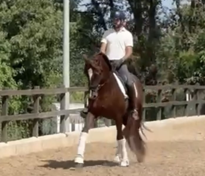 🇪🇸 VIOLINO 🇪🇸 🔥 Exceptional Chestnut PRE Stallion – 5 Years – 1.66 m – Grand Prix Prospect 🔥 For the discerning rider or investor seeking true quality, this is a rare opportunity to acquire a top-class Pure Spanish Horse with all the attributes to shine at the highest levels of dressage. Born in 2020, this striking chestnut stallion stands at 1.66 m and captivates with his elegance, presence, and naturally uphill frame. His conformation, movement, and exceptional trainability make him an ideal candidate for a future Grand Prix career. Currently working at the 5-year-old level, he is already showing a remarkable aptitude for collected work, including piaffe, to develop greater control, engagement, and preparation for advanced movements such as one-tempi changes. His work ethic, balance, and cadence set him apart from the ordinary. ✅ Age: 5 years ✅ Height: 1.66 m ✅ Colour: Chestnut ✅ Stallion – Pure Spanish Horse (PRE) ✅ Current Level: 5-year-old FEI level, schooling piaffe ✅ Health: 100% sound, full set of clean X-rays available ✅ Piroplasmosis free With his charismatic presence, exceptional movement, and proven soundness, this stallion represents not only a competitive prospect but also a valuable investment in the international dressage arena.