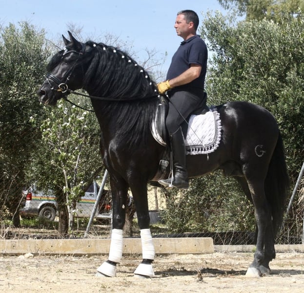 An outstanding dream stallion (can be gelded upon request) with perfect conformation and a wonderful temperament! Absolutely reliable under saddle, highly talented in haute école! Beginning piaffe, extended walk, and fantastic collection movements! No stallion habits! A dream for lovers of the baroque type! Röbis is perfect!
