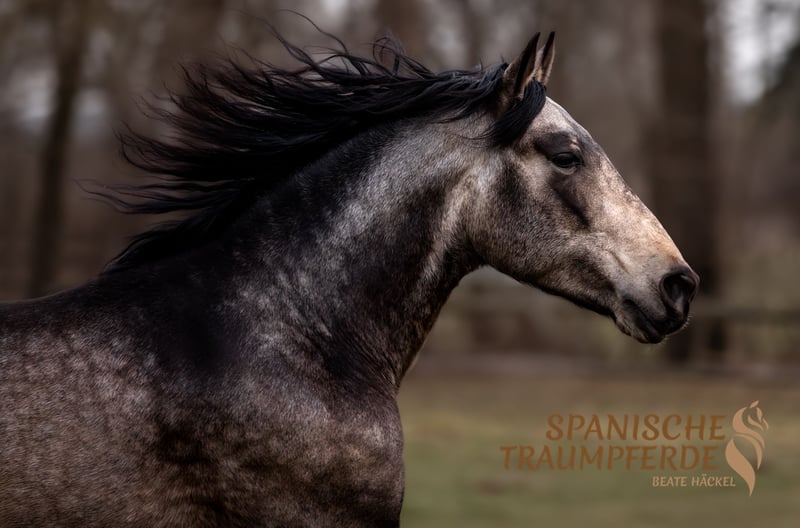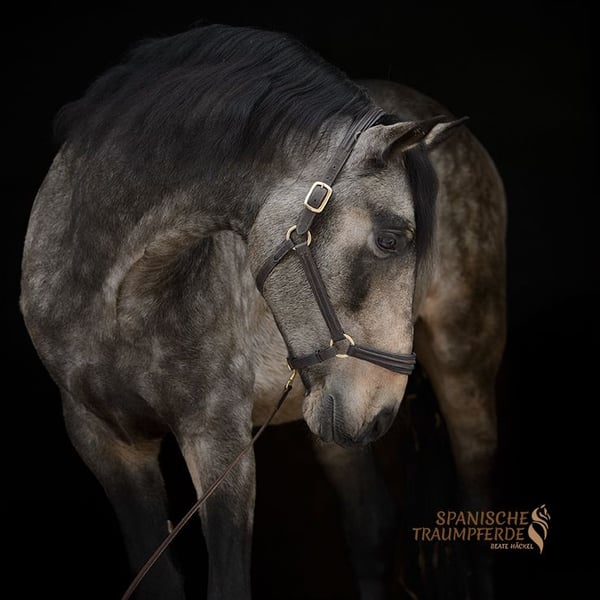 A truly special and wonderful creature is our five-year-old licensed PRE stallion ✨RENE SH✨. If you are looking for a gem to further train, this enchanting PRE stallion is the perfect horse for you. This exceptionally handsome gelding impresses with a very harmonious conformation and expressive, well-balanced gaits, complemented by an extravagant coat color. ✨RENE SH✨ is a horse for lovers of the slightly larger PRE horse, with a sensitive, refined character, yet full of devotion to his handler. Those who earn RENE’s trust and heart will receive his entire soul in return. He is an attentive partner and always strives to do everything correctly. In handling, RENE initially shows gentle reserve with strangers, but those who touch his heart will experience a deep bond with this charming creature. Under saddle, this handsome horse demonstrates incredible nerves and calmness. RENE SH has grown up healthy in a herd environment with his breeder and is currently being appropriately developed for his age. Our charming heartthrob ✨RENE SH✨ is currently ridden in a basic training on a bit. X-rays are available. Location: 23795 Traventhal Getting to know RENE by appointment is possible almost anytime. For this visit, we charge a flat fee of €50 to ensure the protection of our horses.