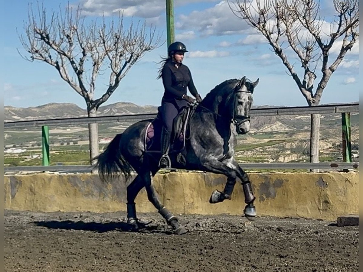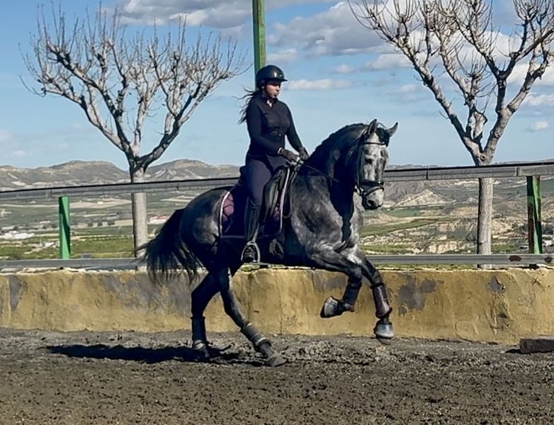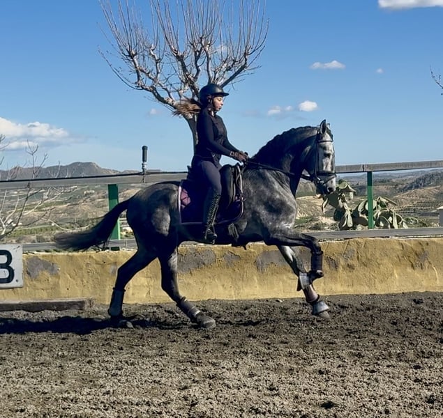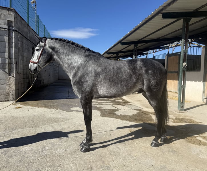 Name: Bilbaíno MG II Breed: Pure Spanish Horse (Pura Raza Española) Age: 5 years Height: 1.68 m at the withers Line: Marín García Gender: Stallion Color: Grey (Tordo) Level: Level 1 Price: €15,500 This horse has excellent conformation, presence, and great potential, making it particularly suitable for classical dressage. He stands out for his quality of movement, balance, and power. He is correctly trained in all three gaits, with clean transitions and good handling both in the arena and in the field. A horse with character and energy, ideal for a rider looking for a horse with drive and quality. 📍 Located in Spain, Murcia 🎥 Videos available, both at rest and mounted