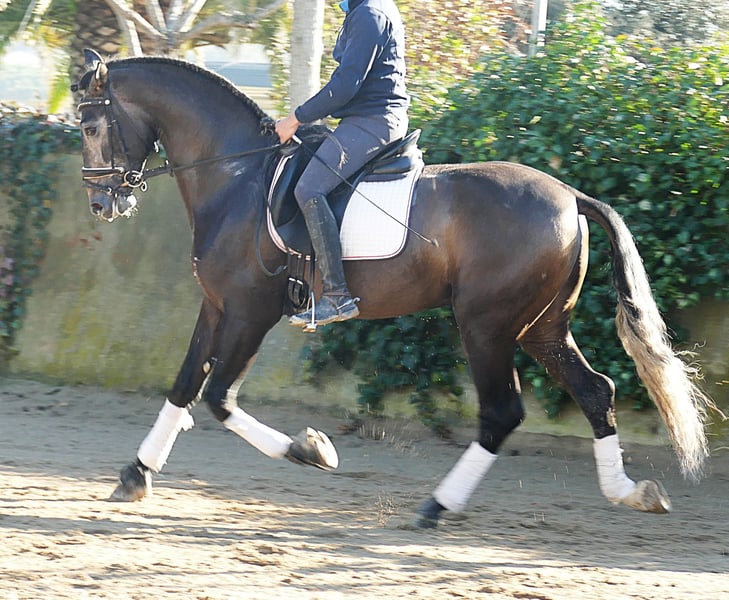 Judio ist ein besonderer PRE-Wallach. Er besticht durch eine elegante, rassetypische und gleichzeitig athletische Erscheinung. Obwohl er noch jung ist, zeigt sich bereits eine ausgeprägte, eher barocke Morphologie. Ein Dressurpferd mit gut entwickelten Sprunggelenken, drei sehr klassische Gänge. Ausgeglichenes und vertrauensvolles Wesen. Unserer Meinung nach ist er ein echtes Dressurprojekt für Amateure oder Profis. Es bleibt spannend, seine Entwicklung zu beobachten. Er wird uns noch überraschen! Herkunft: Dressur aus Senillosa.