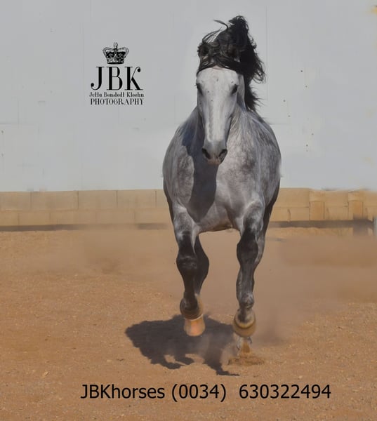 Dieser prachtvolle PRE Hengst aus dem Gestüt El Ancla wurde am 28.02.2021 geboren. Er ist ein sehr großes Exemplar seiner Rasse, und steht aber dennoch im barocken Typ. Valenciano überzeugt nicht nur mit seinem tollen Gangwerk, sondern auch mit seinem gelassenen Charakter. Ein absolut liebenswertes Pferd, das sehr gut erzogen ist und überhaupt nichts verkehrt macht. Mit Duque CXIII aus der Yeguada Las Arenas und Educado X aus der Guardiola Zucht haben wir in seiner Blutlinie 2 Elite Hengste der Rasse vertreten. Das spricht für Qualität und spiegelt sich auch in seinen Röntgenbildern wieder. 10 an der Zahl ohne Befund, aktuell vom Oktober 2025. Weitere hochwertige Exemplare aus der Bohorquez, El Ancal und die Guardiola Zucht runden das Rassebild perfekt ab.