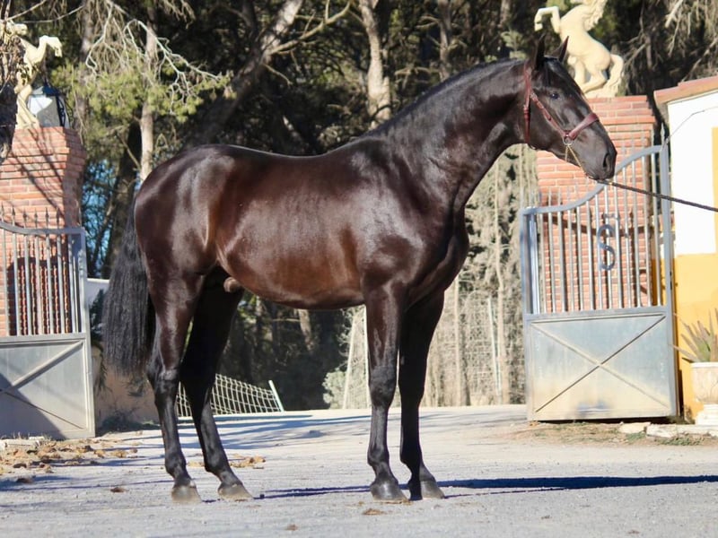 Hübsches schwarzes spanisches Pferd, geboren 2021, diese schwarze Schönheit mit guter Bewegung und einem super Charakter, sucht ein neues Zuhause, wo er weiter lernen und das Beste von sich geben kann. Dieser junge schwarze Hengst, der vor einigen Monaten mit der Dressur begonnen hat, zeigt eine gute Einstellung zur Arbeit. Wenn er das Gleichgewicht zwischen Arbeit und Alter findet, wird er ein Pferd mit beeindruckenden Bewegungen sein. Wir sind sehr begeistert von diesem schwarzen Hengst und glauben, dass er ein Pferd ist, das den ehrgeizigen Züchtern viel bringen kann. für ambitionierte Liebhaber, die ein auffälliges Pferd mit gutem Charakter suchen.
