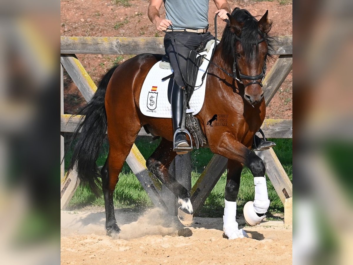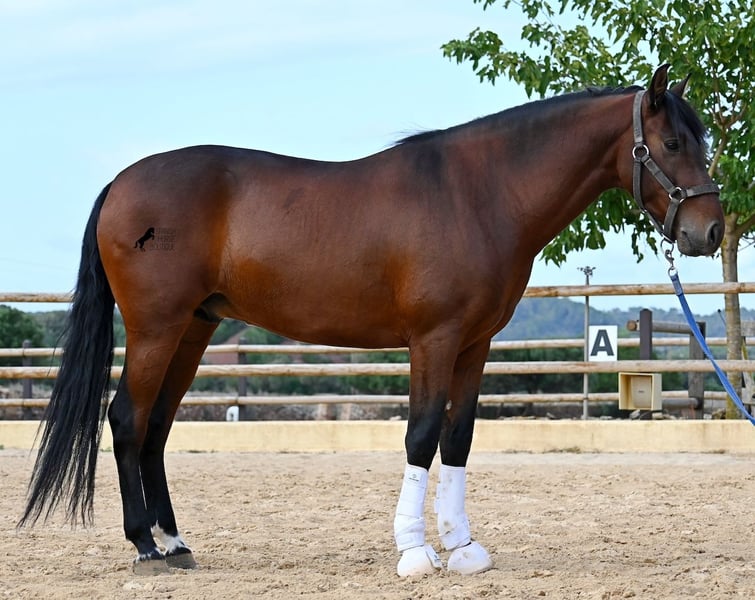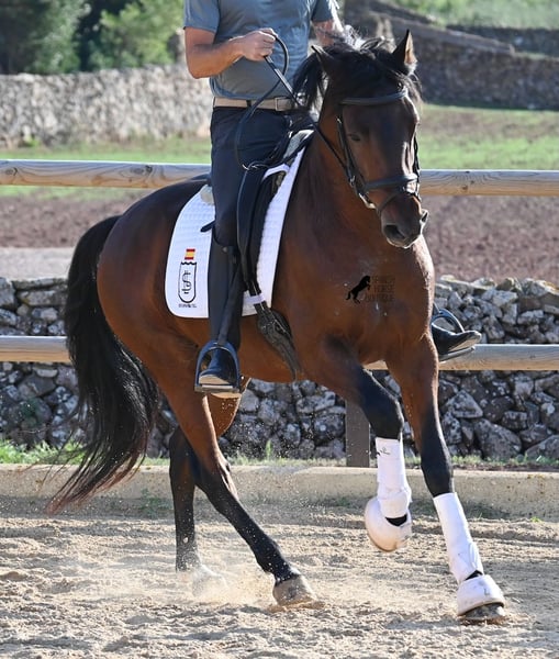 Este caballo PRE de pura raza nacido en 2020 es un auténtico paquete de energía, rebosante de entusiasmo en su trabajo. Proviene de un criador amoroso, donde, como es típico en los caballos españoles de desarrollo tardío, se les da el tiempo que realmente necesitan. Hasta los tres años, estuvo en el grupo de sementales en estado completamente crudo, luego fue montado brevemente para aprender las bases y posteriormente devuelto a su descanso para asimilar todo con calma. Actualmente, cuenta con una buena base bajo la silla, en la que se presta especial atención a que aprenda a diferenciar claramente entre su impulso hacia adelante y las fases de calma bajo el jinete. Cada día mejora en su capacidad para mantenerse en equilibrio, estirarse y prolongar las fases de descanso, lo cual es muy gratificante de ver. Es un caballo que no ha sido apresurado en su entrenamiento, sino que ha tenido tiempo para encontrarse a sí mismo y aprender a gestionar su energía. Tiene un deseo de trabajo inagotable: donde otros se cansan rápidamente, él da más y no se cansa, lo que lo convierte en un caballo ideal para jinetes muy ambiciosos que disfrutan de entrenamientos regulares y específicos. Se monta con una bitrense doble y solo lleva herraduras en las patas delanteras. Por la noche, vive en un paddock para sementales, lo cual le beneficia mucho mentalmente, y durante el día está en box, donde recibe un cuidado atento y una alimentación adecuada. Las excursiones por el extenso terreno de una hectárea le hacen mucho bien y se nota cómo encuentra su equilibrio, ofreciendo un cambio positivo respecto a la pista. En días de trabajo ligero, se le lleva a la máquina de trabajo y también se le trabaja sin peso adicional para mantenerlo en forma. Su linaje incluye caballos excepcionales como YACO de TORRELUNA, ERMITAÑO III, y su hermano, que ha tenido mucho éxito en la disciplina de doma y ha llegado incluso a competir en el SICAB (Campeonato Mundial de PRE). Aún no ha sido utilizado para reproducción y está familiarizado con la presencia de yeguas, aunque la opción de castración en el lugar está disponible si así se desea. Actualmente mide 1.57 m y presenta un hermoso físico de estilo barroco, con una cabeza fina de tipo español y movimientos elegantes que lo hacen interesante para muchas disciplinas de alto nivel. Precio en categoría E-F. Su ubicación es en Menorca. Videos y pedigree disponibles a solicitud. Con gusto puedo organizar una inspección veterinaria, entrenamiento, castración, transporte o incluso su viaje si desea venir a verlo en persona. Para más detalles, consulte mi página o hable conmigo directamente. Saludos desde España.
