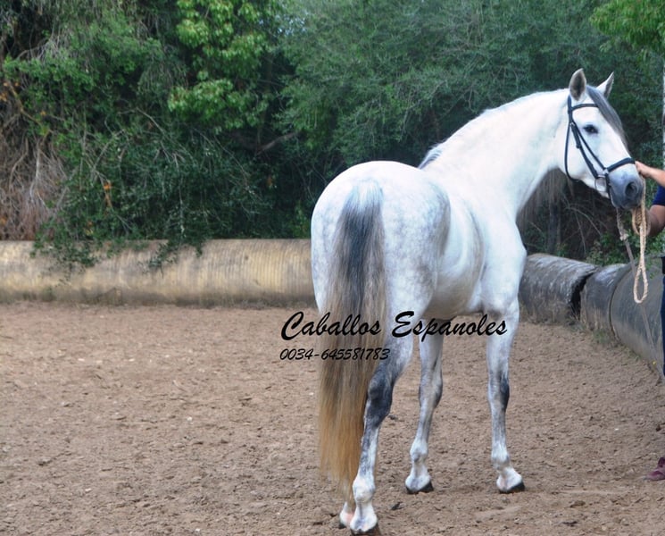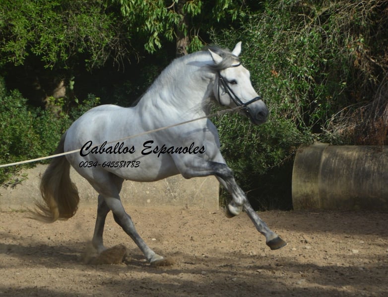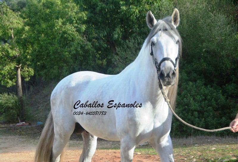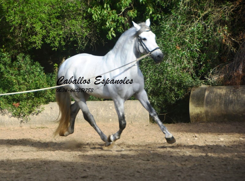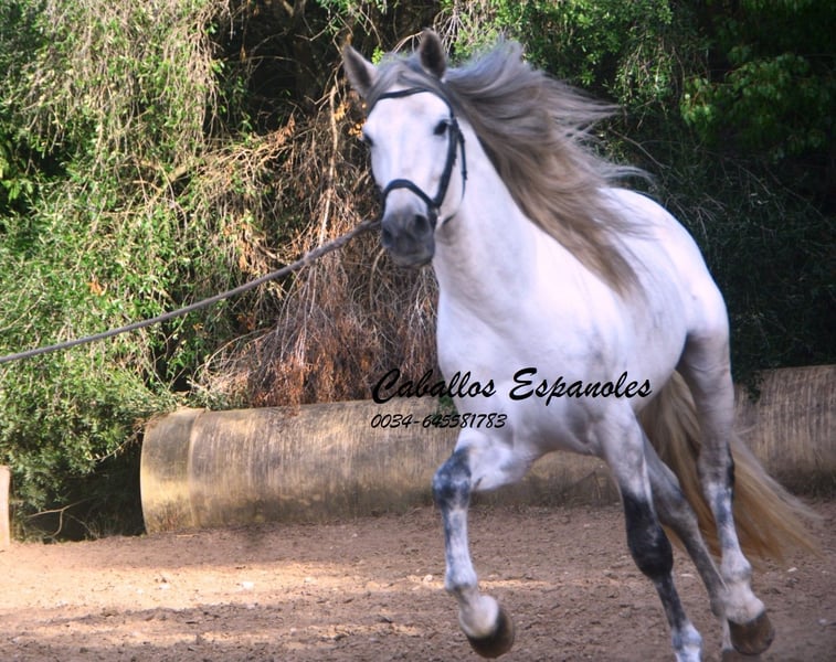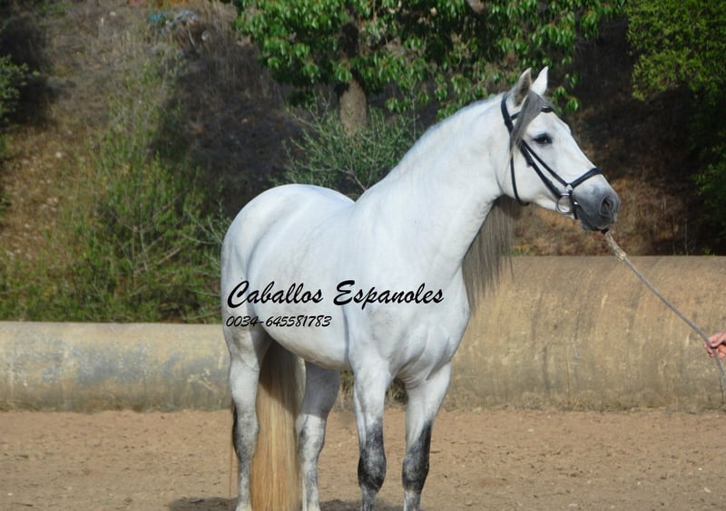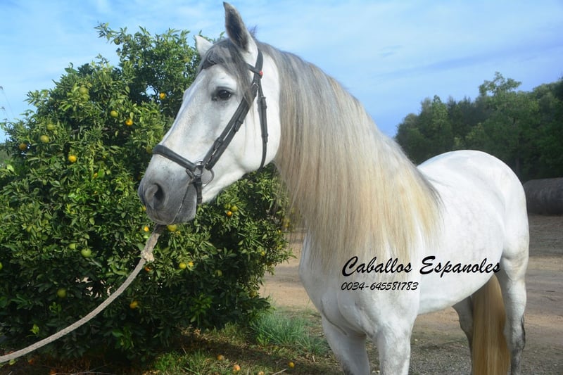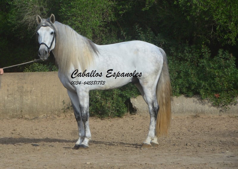 Een droomachtige, prachtige PRE-hengst, in barokke uitstraling van de oude soort. De jonge hengst is correct en harmonieus gebouwd. Hij heeft een zeer evenwichtig karakter, is superbraaf tijdens het verzorgen en staat rustig naast een andere hengst. Mijn speelse honden hebben hem nooit lastiggevallen. De grijze is uitgerust met drie goede basisgangen die zeer comfortabel zitten. Zijn galop is mooi bergop. Hij is in de basisgangen gereden, er wordt gewerkt aan schouder- en flankrijden en zachte beenhulpen. In het terrein was hij ook en toont zich daar zeer braaf. Afstamming: vader is Hacendado (Marin García), Pampero VII. Het paard wordt in opdracht verkocht. Hij kan graag bij ons nog in opleiding blijven. Een keuring wordt op korte termijn georganiseerd. Internationaal transport mogelijk.