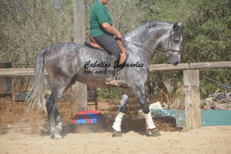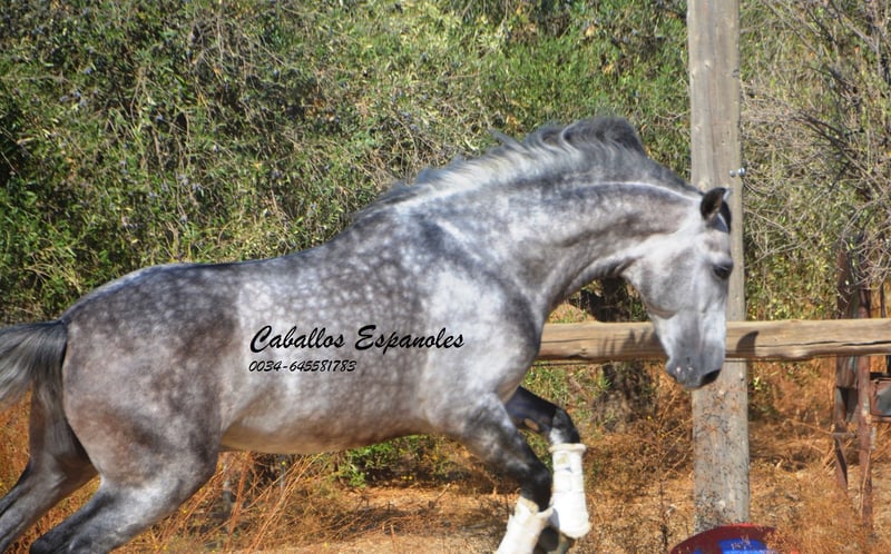 Przepiękny ogier PRE w barokowym typie. Ogier posiada trzy dobre podstawowe chody. Jest posłuszny w obsłudze i dobrze ułożony. Jeźdzony jest we wszystkich trzech podstawowych chadach, zarówno w terenie, jak i na maneżu. W zeszłym roku zaprezentowano go na SICAB, gdzie pokazał się z bardzo dobrej strony. To wspaniały ogier, który przy odpowiednim wsparciu może się znacznie rozwinąć. Rodowód: Moreno de la Cova Koń jest sprzedawany na zlecenie. Możliwość dalszej nauki u nas. Wkrótce zostanie zorganizowany AKU. Transport międzynarodowy.