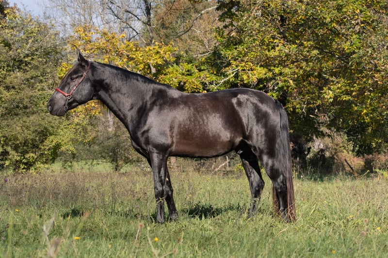 Discover this magnificent 4-year-old black stallion, with an exceptionally calm and balanced character. With his gentle gaze and majestic presence, he will seduce you with his beauty and temperament. From a prestigious lineage, his sire is a recognized dressage champion, currently competing in Grand Prix. This genetic heritage promises outstanding abilities, ideal for discipline and top-level competition.⚜️ Kuieto is not only a reliable everyday partner, but also a promise of success on the rectangles. Whether for sport or breeding, he represents a sound investment for the passionate rider or the demanding professional. Highlights : ⚜️Lignée prestigious: Grand Prix dressage champion sire ⚜️Tempérament calm, ideal for serene progress ⚜️Allures naturally elegant, with competition potential This beautiful stallion is ready to write his own story with you. --- ALEGRIA - Find the horse of your dreams and create a unique relationship based on trust and complicity. At Alegria, we know that buying a horse is much more than a simple transaction. It's about finding a life partner with whom you can build a solid and fulfilling relationship. We offer you expert support every step of the way, so that you can make an informed choice and start this adventure with complete peace of mind. Why choose Alegria? Personalized support to guide you in your choice. We help you find the horse that matches your personality, expectations and skills, so that the relationship that develops with him is fluid and natural. ✨ Our team of experts will advise you, guide you and support you every step of the way, so that you make an informed choice without rushing. Horses raised in an environment conducive to their well-being. Our horses are raised in exceptional conditions, where they benefit from gentle, respectful training ️ based on our exclusive "Relationship of Complicity" method. Each horse is prepared to be a reliable, responsive and balanced partner, ready to build a relationship of trust with you. Quality care for optimum health. The well-being of our horses is paramount. They are regularly monitored by animal health experts: veterinarians, osteopaths, farriers and dentists. This medical follow-up guarantees that your horse will be in tip-top shape, ready to start this new relationship with you in the best possible conditions. Transparent follow-up thanks to progress sheets. Each horse has a detailed progress sheet, so you know exactly what level he's at, his strengths and his character. This transparency gives you all the keys you need to choose the horse that's right for you and the relationship you want to build with him. Ongoing support for a successful relationship. At Alegria, we believe that a lasting relationship can't be improvised. That's why we stay by your side after the purchase, with personalized follow-up to help you build a real bond with your horse. Thanks to our face-to-face and distance learning courses, you'll learn to better understand your horse and strengthen the foundations of your relationship. Testimonials from satisfied customers. We have assisted hundreds of riders in their projects. 100% of our customers are satisfied with the support they receive and the relationship they develop with their horse. Their testimonials are the best proof of the quality of our work and the success of the relationships we foster. Find the horse that's right for you. Discover our selection of exceptional horses and start imagining the relationship you'll create with him. Consult the progress charts and let our team of experts guide you to find the horse that meets your expectations. Discover our selection of horses at www.alegriacomplicite.com and start building the relationship of your dreams. Alegria - Find the horse that's right for you and build a relationship based on trust and complicity.