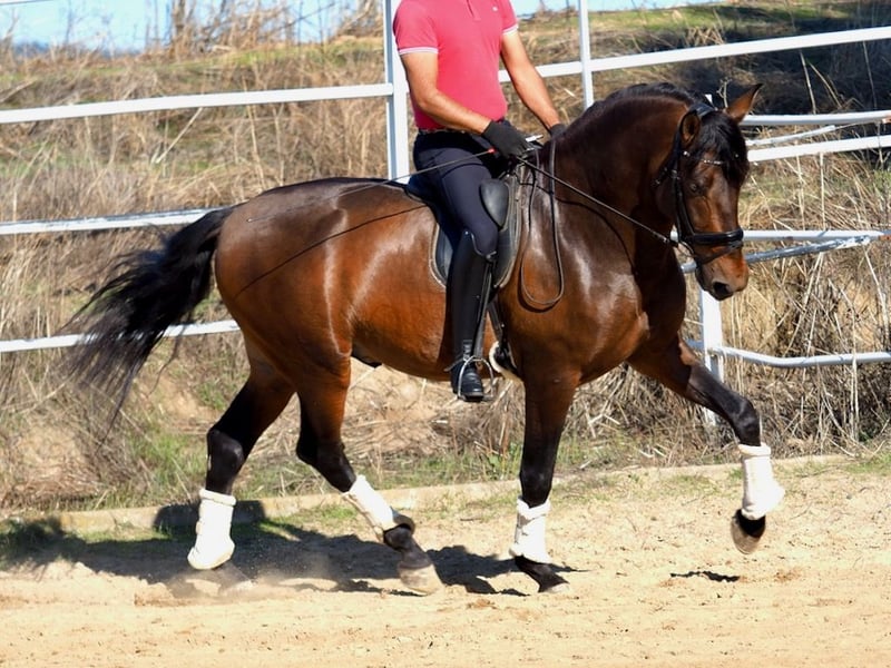 Discover this extraordinary specimen born in 2020, a bay PRE that captivates with his elegance and nobility. With a height of 1.69 metres, this P.R.E. horse stands out not only for his imposing presence, but also for his docile character and his ease to be ridden by any rider with a minimum of experience. Grandson of the renowned Trovador IX and Baldolivas, his lineage guarantees exceptional quality. His level of equitation allows him to perform supports, pirouettes and he is even starting to flying changes, which makes him an ideal choice for those who are looking for a versatile horse with projection. Don't miss the opportunity to acquire this magnificent specimen, perfect for those who are looking for a horse for sale that combines nobility, skills and an outstanding lineage.
