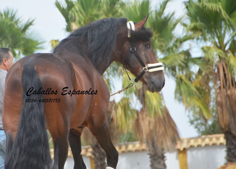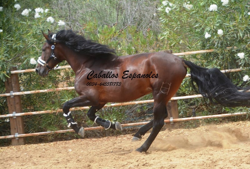Wat een topper! Hij zal zeker niet over het hoofd worden gezien in de dressuurbak. Voor wie op zoek is naar een PRE-hengst met goede beweging, hier is hij. Hij komt van het gerenommeerde stal Felipe Garrocho en is dressuurmatig opgeleid – van vaderskant vinden we veel Candau. De jonge hengst is braaf in de omgang, rijdt in de basisgangen en er wordt gewerkt aan de zijgangen. De hengst wordt 3-4 keer per week getraind, zowel in de bak als buiten op de grote piste. Voor knuffelsessies is hij altijd beschikbaar. Hij beschikt over drie uitstekende basisgangen, heeft een mooie grootte en is daardoor zeer geschikt voor de dressuur. Het paard wordt in opdracht verkocht. Hij kan indien gewenst bij ons nog in training blijven. Een keuring wordt op korte termijn georganiseerd. Internationaal transport mogelijk.