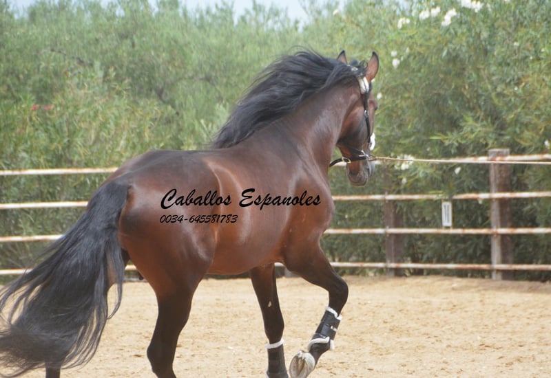 ¡Qué maravilla! Sin duda, no pasará desapercibido en el círculo de doma. Si buscas un semental PRE con buen movimiento, aquí lo tienes. Proviene de la prestigiosa ganadería Felipe Garrocho y está criado para la doma. Por parte de padre, encontramos mucha influencia de Candau. El joven semental es tranquilo en su manejo, ha sido montado en los pasos básicos y se trabaja en los cambios de mano. Se ejercita de 3 a 4 veces por semana, tanto en la pista cubierta como en el gran paddock exterior. Siempre dispuesto a recibir mimos. Cuenta con tres pasos básicos excelentes, una estatura adecuada, lo que lo hace muy recomendable para la doma. El caballo se vende por encargo. Puede quedarse con nosotros para su preparación. Se organizará una revisión veterinaria en breve. Transporte internacional disponible.