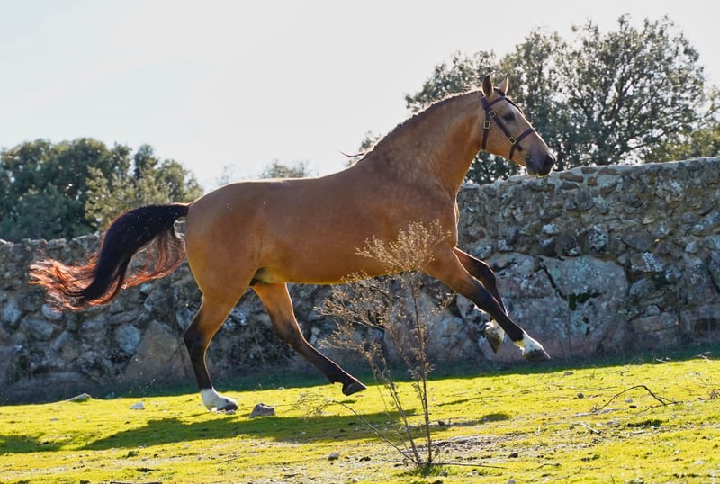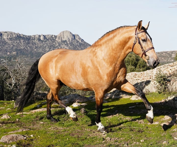 ✨ Buckskin PRE Stallion – Approved for Breeding ✨ Exceptional Pura Raza Española stallion, 6 years old, 1.72 m, with a rare buckskin coat and natural golden shine. A stallion that combines beauty, balance, and rideability. He is easy in handling, correct in conformation, and a natural top mover with elasticity and cadence in all three gaits. ✔ Approved for breeding ✔ Excellent bloodlines, including the Tremendous lineage ✔ Modern PRE type with strong hindquarter ✔ Elegant presence and correct mechanics A refined stallion for breeders and riders seeking quality, movement, and elegance !!!Additionally, he is a baroque-line horse, making him ideal for those seeking a horse with exceptional beauty and character. Don’t miss the chance to own a stallion of outstanding quality. For more information, please do not hesitate to contact us.