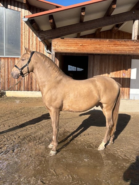 Zum Verkauf steht ein wunderschöner PRE Hengst, geboren im Jahr 2019. Dieses elegante Pferd überzeugt durch sein freundliches Wesen und seine beeindruckende Erscheinung. Mit einem Stockmaß von 156 cm ist er so gut wie bei jeder Disziplinen einsetzbar. Durch sein absolut gelassenen Charakter ist er nicht nur eine Lebensversicherung im Gelände sondern macht auch in der Halle eine gute Figur. Durch seine Unerschrockenheit und Lernwilligkeit ist er nicht nur sehr gut für die Working Equitation einsetzbar, sondern hat auch viel Potential im Dressurviereck. Er liebt es gekrault und geputzt zu werden, aber auch die Freiarbeit macht im sehr viel Spaß. Español ist gut ausgebildet und weiß sich zu benehmen. Er wird im Moment artgerecht nach der Ausbildungsskala ausgebildet und freut sich nun auf einen neuen Herzensmenschen, der in weiterhin fördert und fordert aber ihn auch mal Pferd sein lässt und der Spaß nicht zu kurz kommt. Bei Interesse stehe ich gerne für weitere Informationen und Proberitte zur Verfügung. Dieses besondere Pferd wartet auf eine neue liebevolle Familie, die seine Qualitäten zu schätzen weiß.