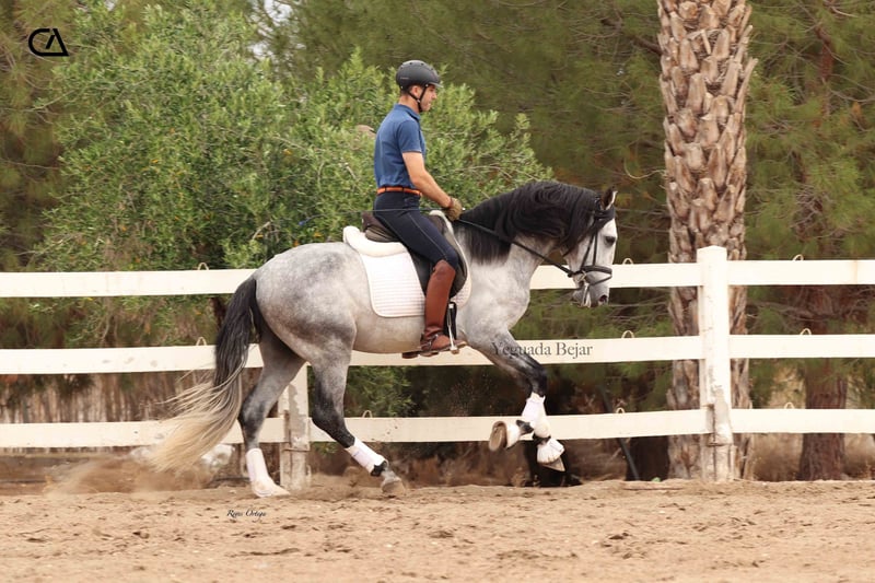 Onix de Torres is perfect mate to enjoy riding. Onix is a beautiful young horse with three quality gaits, and a sweet and friendly character, who will make anyone will fall in love with. His temperament is calm, docile, and trusting with people, all this makes him easy to handle. Onix has a good dressage level, appropriate to his age: lateral exercises, counter canter, steps back, and he is starting the Spanish walk. He also has very good aptitudes and predisposition to continue evolving in his training. On hthe sire side his bloodline comes from Vanidoso Mac, a stallion bred by Yeguada Cárdenas, and son of the legendary Utrerano VII, Elite Breeder Stock, and Joya Mac. On her dam’s side, Onix comes from Dama CY, a mare with the Yeguada Militar, Cárdenas line and Bohorquez.