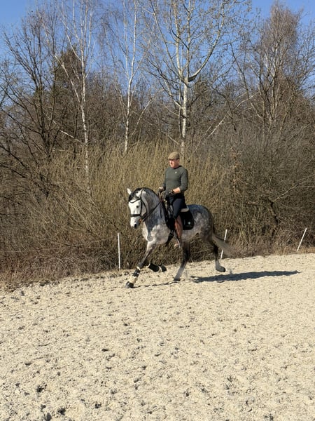 Ich biete einen wunderschönen Andalusierhengst zum Verkauf an. Das Pferd hat sehr gute Bewegungen in allen drei Gangarten. Er ist bombensicher und hat einen wunderbaren Charakter. Sehr guter Kopf, lernt schnell. Das Pferd macht fliegende Wechsel, Rückwärtsrichten und Schulterherein. Gesund und problemlos im Umgang (Hufschmied, Pflege). Ideal als Perspektive für ein Dressurpferd oder für Working Equitation. Ich kann ihn nur wärmstens empfehlen.