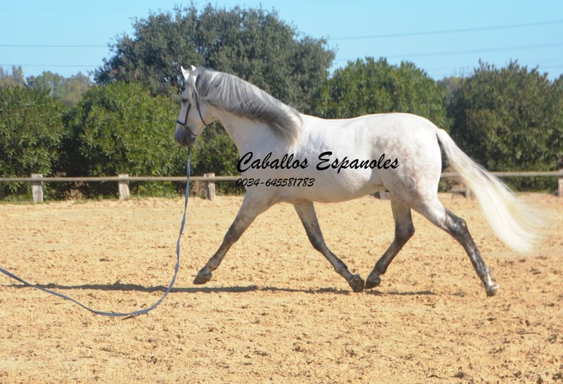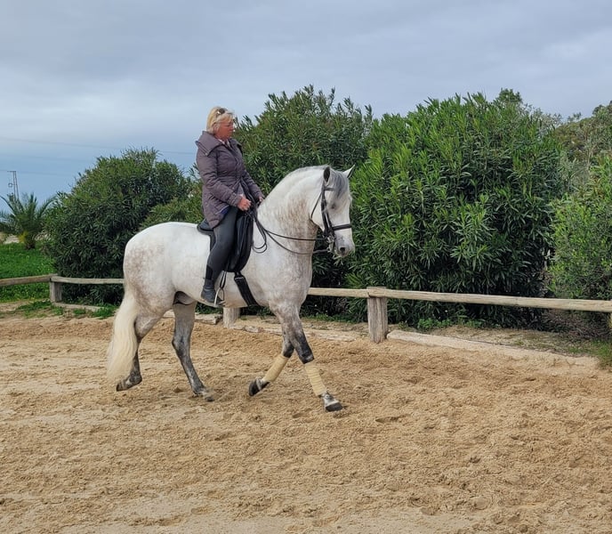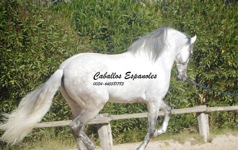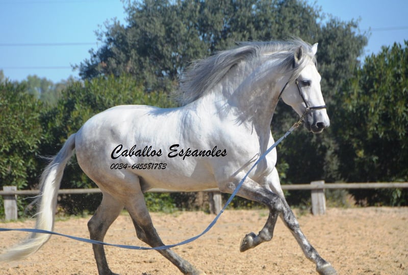 Esta belleza clásica destaca por su apariencia barroca y elegante, como era el caballo español de antaño. El semental tiene un carácter muy equilibrado y es sumamente tranquilo al prepararlo. No presta atención a los jóvenes sementales que juegan en el paddock. El caballo gris cuenta con tres pasos básicos excelentes, que ofrecen una gran comodidad en el asiento. Ha sido montado en los pasos básicos, trabajando en laterales y cambios de pie en vuelo. También muestra sus primeros pasos en la piaffe. El caballo se vende por encargo. Puede permanecer con nosotros en entrenamiento si se desea. Se organizará una revisión veterinaria en breve. Transporte internacional disponible.
