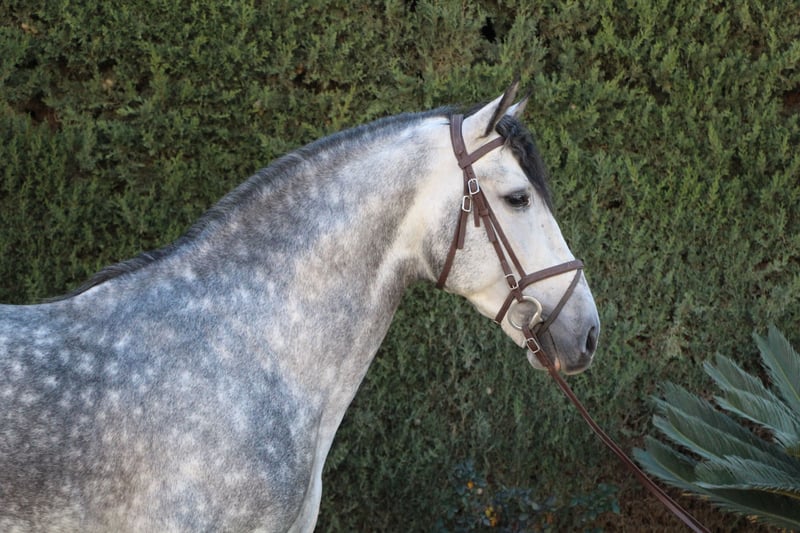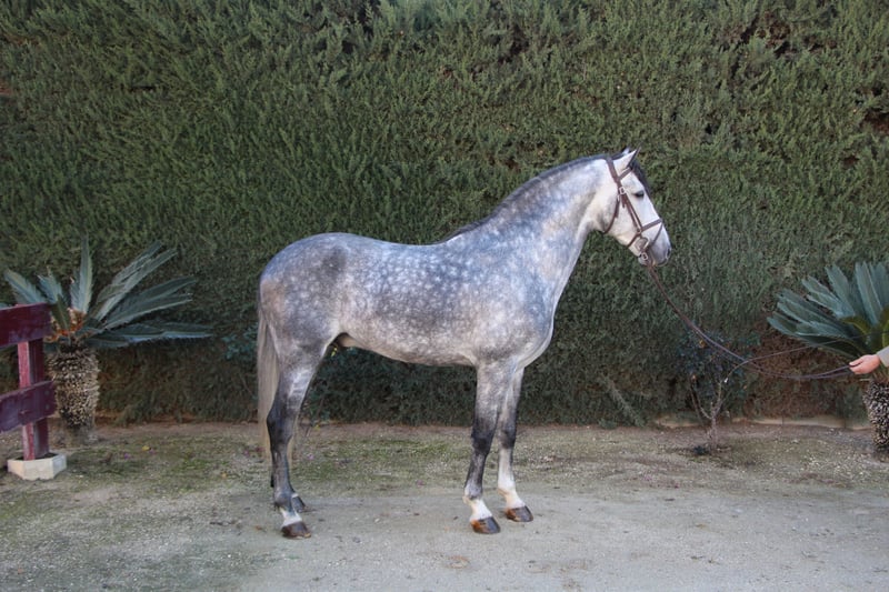 Deze Spaanse hengst, geboren in 2018, is het droompaard voor iemand die op zoek is naar een PRE-paard met een prachtige lichaamsbouw. Met drie kwaliteitsvolle gangen is deze mooie grijze PRE een comfortabel en aangenaam paard om te rijden. Momenteel onder het zadel doet hij laterale oefeningen, piaffe, passage, Spaanse stap en initieert hij vliegende changementen en pirouettes. Hij is een perfecte vrijetijdsgezel, een paard om plezier te hebben in het oefenen in de arena en ook erg braaf zowel op stal als met andere paarden. Hij is een heel speciaal paard waarmee je opvalt waar je ook met hem bent.