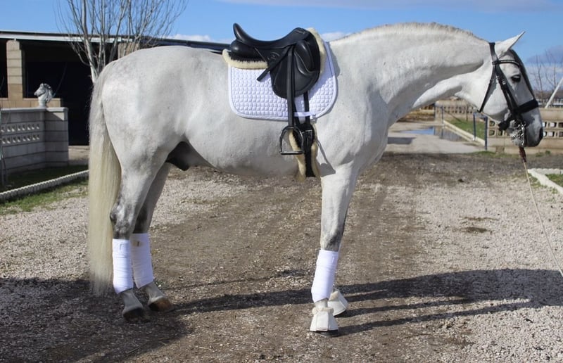 Precioso pura raza española en venta Hijo de fer bago, y nieto de educado X Semental de 8 años, con un caracter y nobleza inmejorable, muy educado y respetuoso. Tres muy buenos aires, cuesta arriba. Alzada 1.73cm Nivel 3. Ejercicios laterales a los tres aires, piruetas al paso, paso atras, apoyos, espaldas adentro, cesiones, grupa adentro, contraespalda. Iniciado en piaffe y piruetas al galope. Caballo muy confiable, guapo y con mucha calidad. Perfecto para doma clasica, y para ocio, ya que puede salir a cualquier parte y sabes que es a prueba de bombas