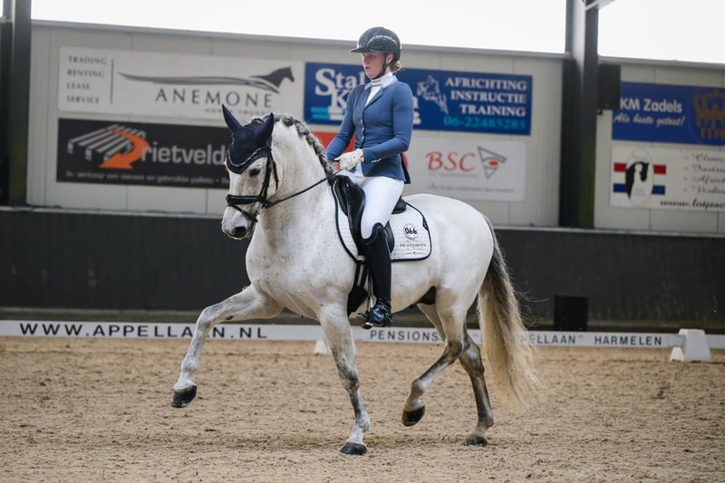 Elias Torreluna es un hermoso semental tordo con un carácter de oro. Elias es un caballo que te roba el corazón de inmediato con sus abrazos, su hermosa melena larga y su precioso brillo plateado. Tiene 3 aires muy buenos. Posee un buen paso, un trote amplio con muy buen posterior y un galope ascendente que es fácil de cerrar, es muy agradable de montar y realmente te da una sensación de asombro. Elias es un caballo adecuado tanto para un jinete ambicioso como para un jinete principiante. Elias está clasificado en ZZ Licht y se entrena a nivel ZZ Zwaar, tiene mucho potencial para passage y piaffe. Amazona mide 1.78. NL Stables Elias Torreluna ha logrado muchos resultados hermosos a una edad temprana. Durante el Campeonato Holandés MCI de Caballos Jóvenes 2023 fue subcampeón con una puntuación promedio del 86%. Este semental PRE también tuvo un buen desempeño durante el Campeonato Europeo en París, ganó la primera prueba en la categoría de caballos jóvenes y obtuvo una medalla de bronce en la clasificación general de esta categoría. En el proceso de selección para el Campeonato Europeo MCI 2024, Elias se convirtió en campeón holandés con una puntuación del 73% en la prueba y 77% en la kür nivel 2. Con esto, se califica nuevamente para el Campeonato Europeo MCI 2024 en Exloo. Aquí obtuvo el título de subcampeón europeo en Sevilla y ganó por segunda vez consecutiva, además de la plata individual, el oro por equipos. Además de sus logros en la pista con el MCI, Elias también tiene buenos resultados en las competiciones de la KNHS. Ha conseguido múltiples victorias entre los caballos de sangre caliente en Z1 con puntuaciones alrededor del 68% y en Z2 con puntuaciones alrededor del 67%. Elias quedó cuarto en el Z2 durante los campeonatos de interior de la KNHS 2025. Elias proviene directamente del criador Yeguada Torreluna, completamente aprobado incluyendo cuello y espalda.
