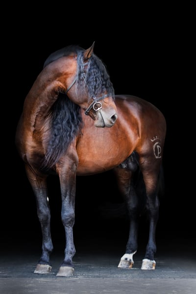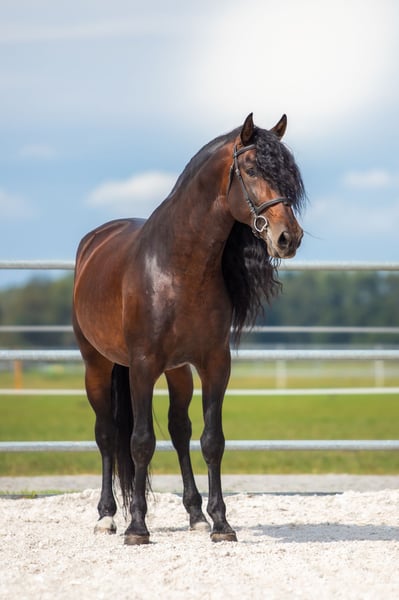 Impresive in size and movement, this powerful stallion consistently passes on his exceptional bones structure, stature, and athleticism to his foals. He is a top choice for breeders that looking for strength, presence and quality movement.