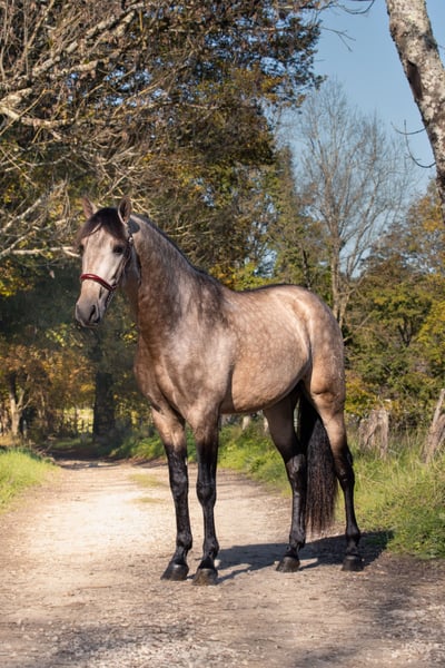 We are pleased to offer you Nacar de Lucia, a 4-year-old purebred Spanish stallion (PRE) with an Isabelle coat. This magnificent horse is distinguished by his beauty, elegance and exceptional character. In keeping with PRE breed standards, Nacar de Lucia combines traits of nobility and intelligence. His lineage is marked by horses of the highest quality. Nacar de Lucia has a gentle, respectful temperament. His balanced character makes him an excellent partner. What's more, he has excellent locomotion and potential for a variety of disciplines, including dressage. Nacar de Lucia embodies the typical beauty of the PRE, with a harmonious silhouette. His kindness and gentleness make him a stallion of choice. His origins are solid and prestigious, offering the promise of high-quality offspring. We are delighted to offer you the opportunity to have your mare covered by Nacar de Lucia and to produce horses combining beauty, character and exceptional abilities. Price: €1,000 for full foal and €800 for crossbred.