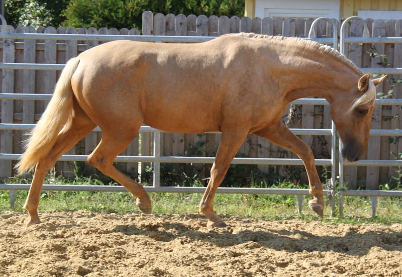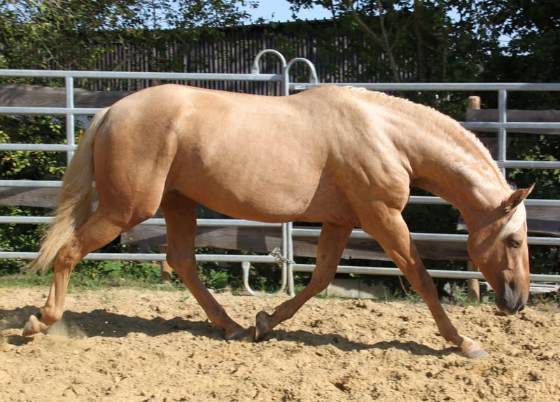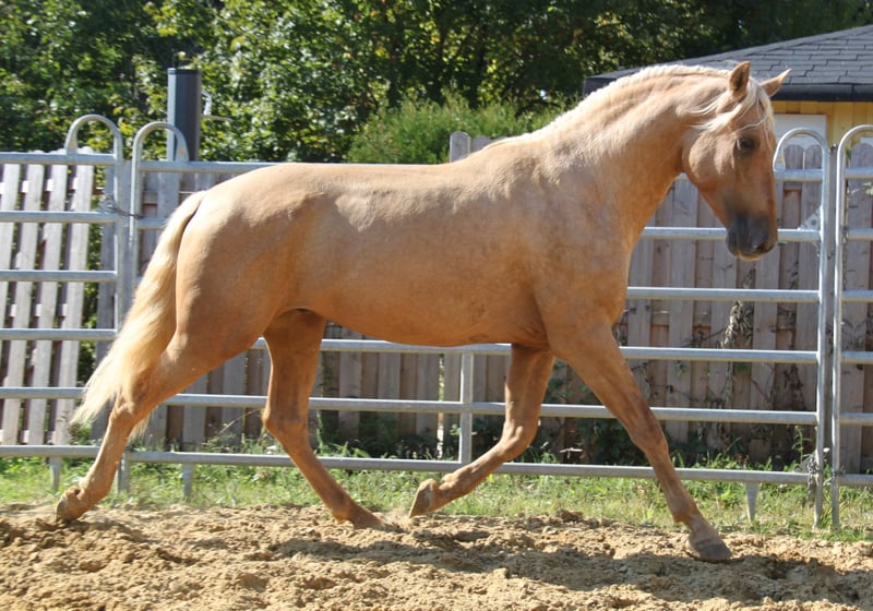 Suchen Sie einen absolut außergewöhnlichen, barocken Traumhengst als Vater für Ihr Fohlen? Natural XIV ist nicht nur vom Exterieur ein absoluter Traum, sondern auch charakterlich! Die spanische Körkommission war bei der Körung im Juni 2025 in Deutschland sehr beeindruckt von Naturals tollem, gelassenen und anhänglichen Wesen, dem er - zusammen mit seinem tollen Exterieur und seinen traumhaften Bewegungen - die Wertung "sehr hohe Zuchtqualität" zu verdanken hat. Das Körprotokoll betont ausdrücklich sein hervorrangendes Temperament und seinen hervorragenden Charakter und stuft Natural XIV sowohl in der Zuchtqualität als auch in der Gesamtharmonie mit der Note "Sehr gut" ein. Vom Typ her ist er sehr barock, wie sein Vater Floc II, und vom Gemüt her - trotz seines jungen Alters von gerade einmal drei Jahren - absolut unerschrocken und souverän, auch in unbekannten Situationen. Natural hat zudem sehr gute Bewegungen, einen hervorragenden Schritt, einen hervorragenden Galopp und einen raumgreifenden, schwungvollen Trab. Altersentsprechend befindet er sich in der Ausbildung und zeigt sehr viel Motivation und Arbeitswilligkeit. Er lernt gerne und schnell und ist absolut konzentriert auf seinen Menschen. Von der Genetik her vererbt er e/e und hat ein Cremegen, so dass er mit Stuten ohne Verdünnungsgen - je nach Farbgenetik der Stute - seinen Fohlen die Farben Palomino und Falbe vererben kann. Mit Stuten mit Creme- oder Pearl-Gen kann er je nach Genetik der Stute Cremello, Perlino, Palomino, Falbe, Palomino Perla oder Baya Perla vererben. Ab dem 1. April 2026 steht Natural XIV auf der Hengststation Steinsberg Stuten aller Rassen zur Verfügung. Die Decktaxe beträgt 700,- Euro für PRE-Stuten und 600,- Euro für Stuten anderer Rassen. https://www.hengste-steinsberg.de/natural-xiv/ Stuten können auf Wunsch vor Ort mit Frischsamen besamt werden. Alternativ kann Frischsamen versandt werden. Nach Absprache ist auch die Bedeckung im Natursprung möglich. Natural ist absolut gesund und sehr robust. Es liegen Röntgenbilder ohne Befund vor. Bei Interesse erreichen Sie uns gerne telefonisch oder per WhatsApp unter 0179 922 4436.