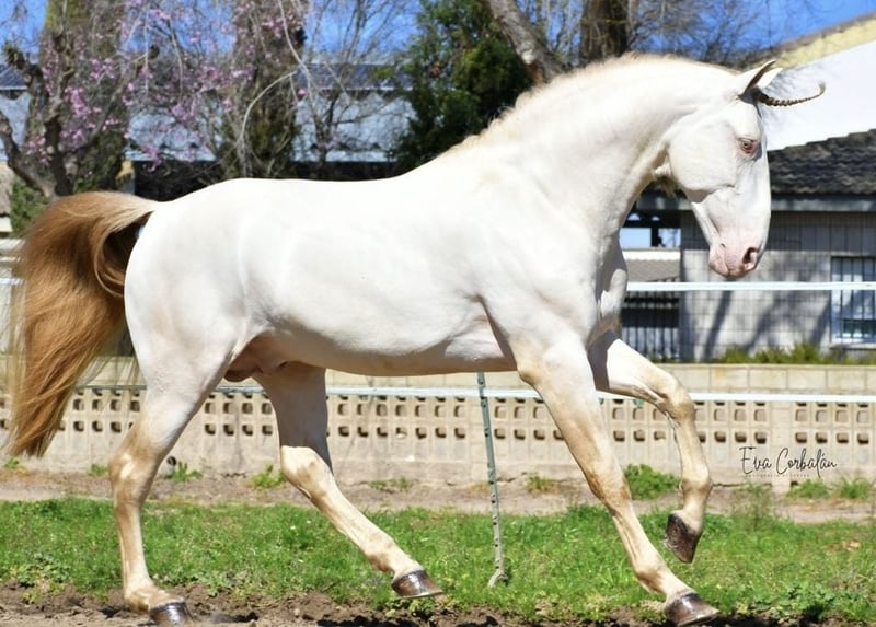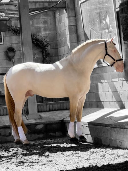 Picasso LH – Excellence in the Pure Spanish Horse Picasso LH is one of the most renowned and sought-after Pure Spanish Horse stallions with a diluted coat color today. He stands out for his excellent conformation, expressive movement, stature, noble temperament, and strong racial characteristics, which he reliably passes on to all his offspring. His pedigree is equally exceptional: son of the most awarded diluted coat stallion in history (sub-champion of the world) and grandson of a stallion with multiple medals in morphological competitions. Furthermore, Picasso guarantees that all his descendants will have a diluted coat, regardless of the mare’s color (except for grey mares). He will never transmit black, bay, or chestnut coats. 📦 Semen shipped to all European countries 📌 Stud fee: €990 (+ veterinary collection and shipping costs).