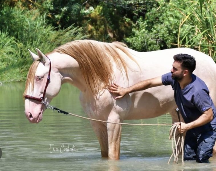 Picasso LH – Uitmuntendheid in de Spaanse Volbloedpaard Picasso LH is een van de meest gerenommeerde en gewilde dekhengsten van het Spaanse volbloed met een gedilueerde vachtkleur. Hij valt op door zijn uitstekende morfologie, expressieve bewegingen, formaat, nobele karakter en de puurheidskenmerken van zijn ras, die hij trouw doorgeeft aan al zijn nakomelingen. Zijn afstamming is eveneens uitzonderlijk: hij is een zoon van het meest bekroonde gedilueerde paard in de geschiedenis (wereldkampioen) en kleinkind van een dekhengst met meerdere medailles op morfologische concoursen. Daarnaast garandeert Picasso dat al zijn nakomelingen een gedilueerde vachtkleur zullen hebben, ongeacht de kleur van de merrie (behalve bij grijze merries). Hij zal nooit zwarte, bruin- of kastanjekleurige veulens doorgeven. 📌 Dekgeld: €990 (+ veterinaire kosten voor semenafname en verzending). WE VERZENDEN SEMEN NAAR HEEL EUROPA.