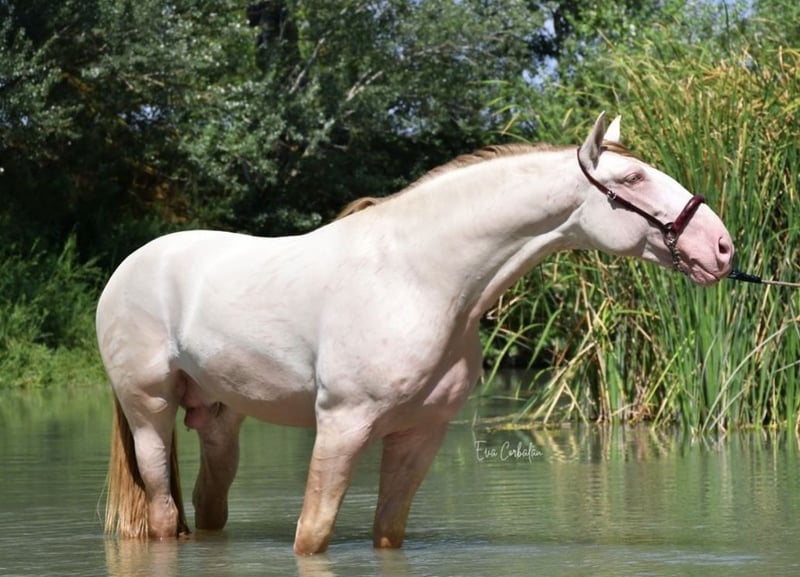 Picasso LH – Doskonałość w rasie hiszpańskiej czystej krwi Picasso LH jest jednym z najbardziej cenionych i poszukiwanych ogierów rasy hiszpańskiej czystej krwi o rozcieńczonym umaszczeniu. Wyróżnia się doskonałą budową, ekspresyjnymi ruchami, dużym rozmiarem, szlachetnym charakterem oraz cechami czystej rasy, które wiernie przekazuje swojej potomstwu. Jego rodowód jest równie wyjątkowy: jest synem najbardziej nagradzanego w historii konia o rozcieńczonym umaszczeniu (wicemistrza świata) oraz wnukiem wielokrotnie medalowanego ogiera na konkursach morfologicznych. Ponadto, Picasso gwarantuje, że cała jego potomstwo będzie miało umaszczenie rozcieńczone, niezależnie od koloru matki (z wyjątkiem klaczy szarych). Nigdy nie przekaże czarnych, kasztanowych ani ognistych umaszczeń. 📌 Cena krycia: 990 € (+ koszty weterynaryjne za pobranie i wysyłkę). WYSYŁAMY SEMEN NA CAŁĄ EUROPEĘ.