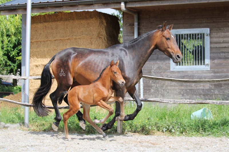 Decadente is een PRE hengstenveulen bij ons geboren op 21/05/2025. Zijn moeder, Valentina del Abadia is een dochter van Talión de Torreluna en onze stammerrie Gracia IV. Ze behaalde als 4 jarige merrie een gouden medaille in de Concurso Morfológico in Bocholt. De vader van Decadente is onze jonge dekhengst Bien de Scuderia (laatste 3 foto's). Bien is een zoon van de legendarische Poeta de Susaeta en Rima de Susaeta, dochter van elite dekhengst Doblón-TR. Decadente heeft een nieuwsgierig, zelfzeker karakter. Hij beweegt bijzonder goed, en laat ook heel graag zien wat hij in zijn mars heeft. Een opportuniteit voor wie zoekt naar een sportieve PRE met een top afstamming !