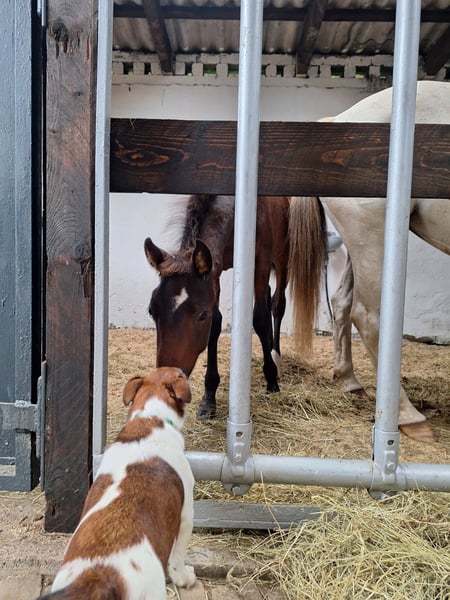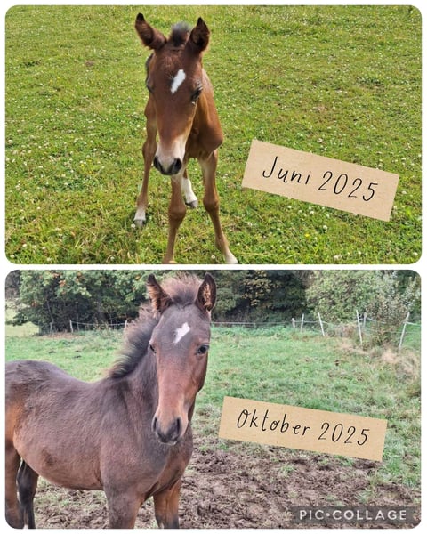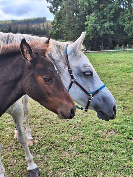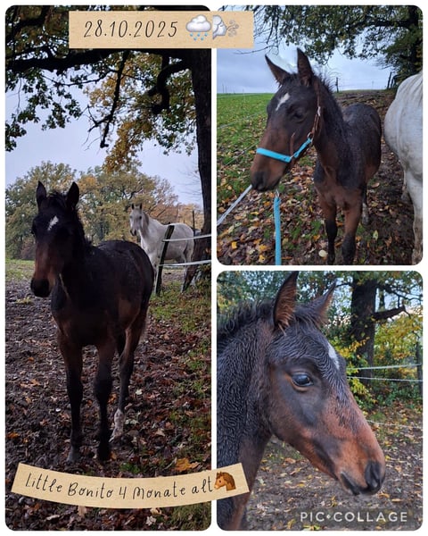 Meine Araber-Mix-Stute hat am 28. Juni 2025 ein wunderschönes Hengst Fohlen, mit dem Namen Little Bonito auf die Welt gebracht. Der Papa von Little Bonito ist ein schwarzer PRE Little Bonito darf mit 6 Monaten als Absetzer ausziehen. Das Fohlen ABC läuft seit Tag 1 und Little Bonito macht sich richtig gut dabei :-) Little Bonito befindet sich gerade im Fellwechsel, wie man den Fotos entnehmen kann. Die erste Hufbearbeitung von Little Bonito war am 28.08.2025 und die zweite Hufbearbeitung war am 14.10.2025. Am 01.12.2025 erfolgt dann die nächste Hufbearbeitung. Wer ernsthaftes Interesse an Little Bonito hat, darf sich gerne melden und sich vor Ort in ihn verlieben :-) Es handelt sich hierbei NICHT um einen Notverkauf und der Preis ist nicht verhandelbar.
