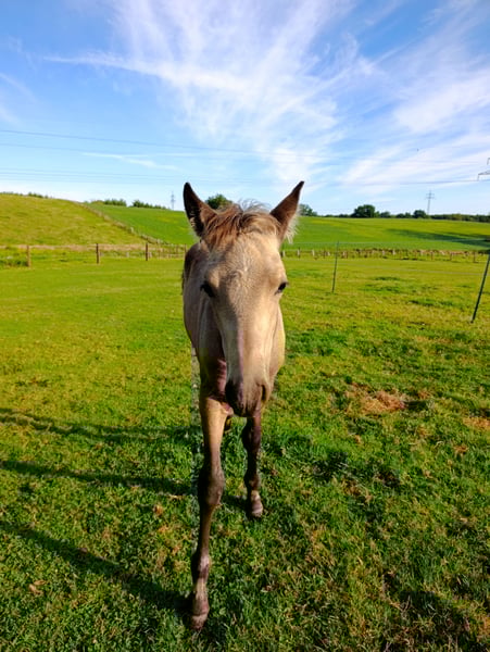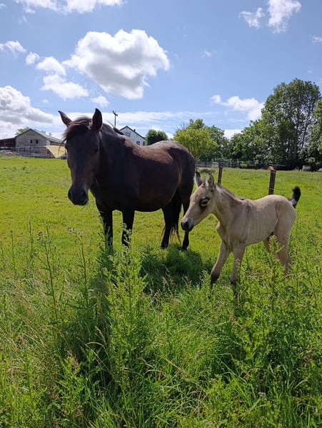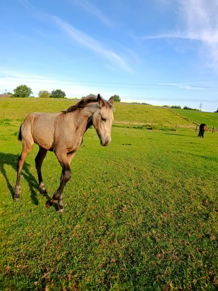 Wir bieten unser wunderschönes, typvolles Pura Raza Española Hengstfohlen "Guapo" in der edlen Farbe Buckskin entweder - zur Verfügung oder - zum Verkauf an. Geboren am 23.06.2025, ist dieser junge Hengst aktuell 4,5 Monate alt und entwickelt sich prächtig. Er überzeugt durch sein aufgeschlossenes, menschenbezogenes Wesen. Er ist äußerst neugierig, verschmust, verspielt und ausgesprochen klug. Schon jetzt zeigt er sich sehr lernfähig und genießt die tägliche Aufmerksamkeit. Beide Elterntiere (JMS Chula & S Galeon) sind vor Ort und können selbstverständlich besichtigt werden. Papiere wird er von der ANCCE erhalten. Unser Fohlen wächst artgerecht mit seiner kleinen Herde auf, kennt den täglichen Umgang und wird regelmäßig entwurmt und der Hufpflegerin vorgestellt. 💛 Was wir uns für ihn wünschen: Wir suchen für diesen besonderen jungen Hengst seinen Seelenmenschen, der die spanische Rasse liebt und zu schätzen weiß und der Lust hat diesen Rohdiamant zu schleifen. Vor allem wünschen wir ihm ein Zuhause, in dem er artgerecht mit Auslauf und Herdenanschluss leben darf, liebevoll umsorgt wird und für immer bleiben kann. Gerne dürfte der Kleine auch mit seinem neuen Besitzer bei uns wohnen. 📍 Standort: 23860 📅 Umzug in einen anderen Stall erst nach dem Absetzen (voraussichtlich ab April 2026) Bei ernsthaftem Interesse freuen wir uns über deine Nachricht und ein persönliches Kennenlernen!