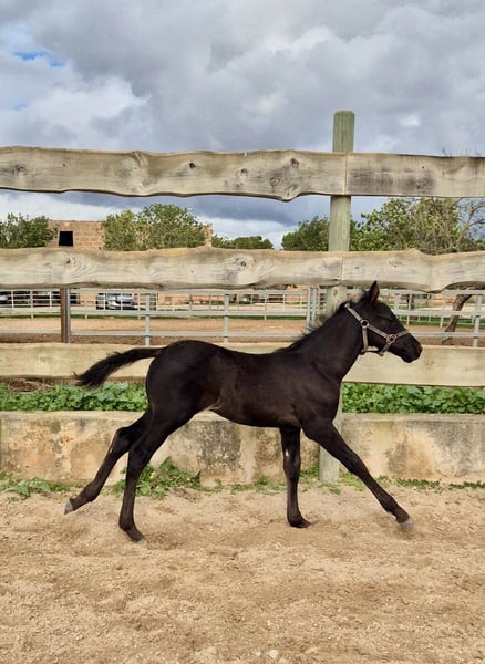Unique opportunity to acquire a Purebred Mallorquina foal, a native Spanish breed classified as critically endangered, with only 294 individuals registered worldwide. This is an unrepeatable chance for those seeking a horse with identity, history, and significant genetic and cultural value. This foal comes directly from the world’s leading breeder of Purebred Mallorquina horses, internationally recognized for excellence in care, welfare, and selection of their herd, adhering to the highest standards of responsible breeding. The foal stands out for: - Broad, elastic, and balanced movements, ideal for both sport and dressage. - Noble, gentle, and trainable character, perfect for establishing a strong bond from a young age. - Impressive presence and conformation, with an estimated height of around 16.1 hh or more. An exceptional specimen for those seeking quality, rarity, and a unique piece of a breed that deserves to be preserved.