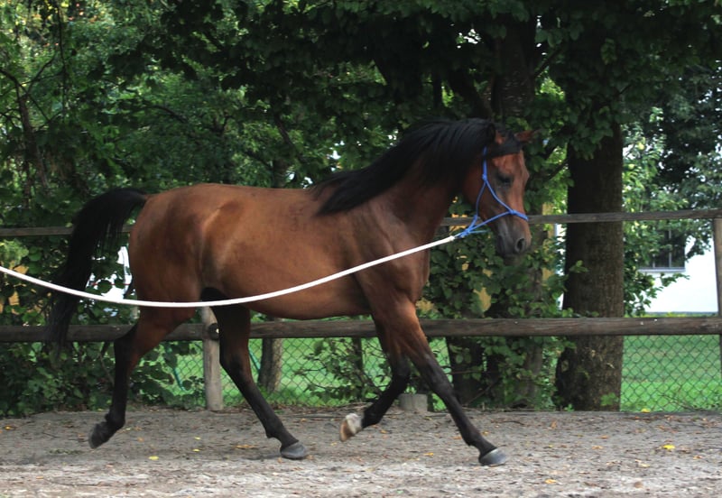 Purebred Arabian gelding 12 years old I am selling my 12-year-old purebred Arabian from the famous Polish stud Janow Podlaski. Anuk came to me as a 3-year-old. Anuk turned 12 in May and is full of energy and enthusiasm for learning. He is 150 cm tall and carries a rider weight of up to approx. 75 kg. Anuk is a barehoof rider, good at trimming hooves and can also be ridden with hoof boots. He is very people-oriented and wants to do everything perfectly when faced with new tasks. Despite his sweet character, humans must be consistent in their dealings with him, otherwise he will take the lead. He is suitable as a leisure horse for rides, dressage lessons, circus lessons (lie down, compliment, goat etc...). He has a very fine mouth and responds very well to the voice. Anuk knows double lungeing, ground work, walks, pole work and shock training etc. You can teach him a lot, whether on the ground or in the saddle. He still has a lot of potential. He loves to do something with his human every day. He goes off-road on his own. Anuk knows cars, tractors and cyclists, but needs a safe and experienced rider whom he can trust. He doesn't like loud noises or fast vehicles coming straight at him, he can jump to the side (but this is all a matter of practice). He is used to dogs, flapping chickens, cows and goats. Anuk is kept outside (shelter with run) and has daily free run and grazing with his stable mates. Anuk will not be sold to dealers or schools.